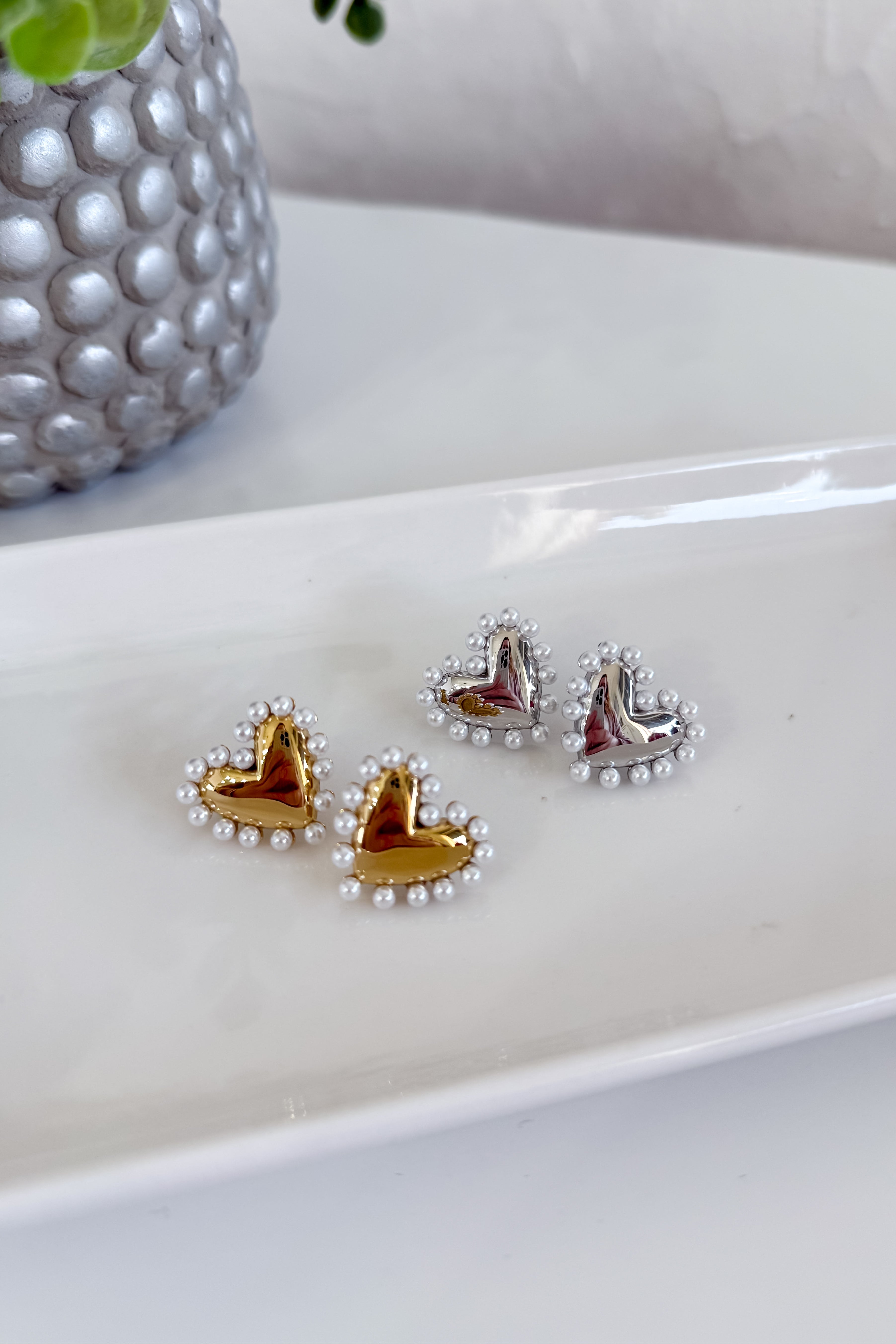 Stainless Steel Heart Pearl Earrings
