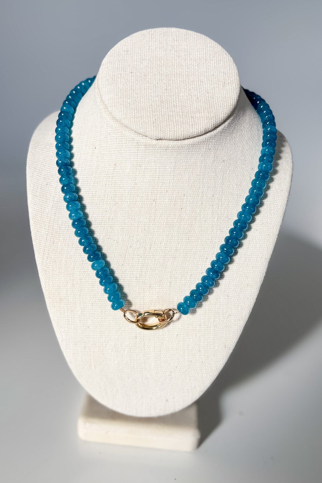 Elevate your jewelry collection with this refined blue beaded necklace, designed as a versatile layering piece. Delicate blue beads are strung together and secured with a reliable clasp closure, making it both beautiful and practical. Perfect for mixing and matching with other necklaces or wearing solo, this piece adds a subtle pop of color and understated elegance to any ensemble. Whether you're dressing up for an occasion or enhancing your everyday style, this necklace brings a touch of sophistication to your look.