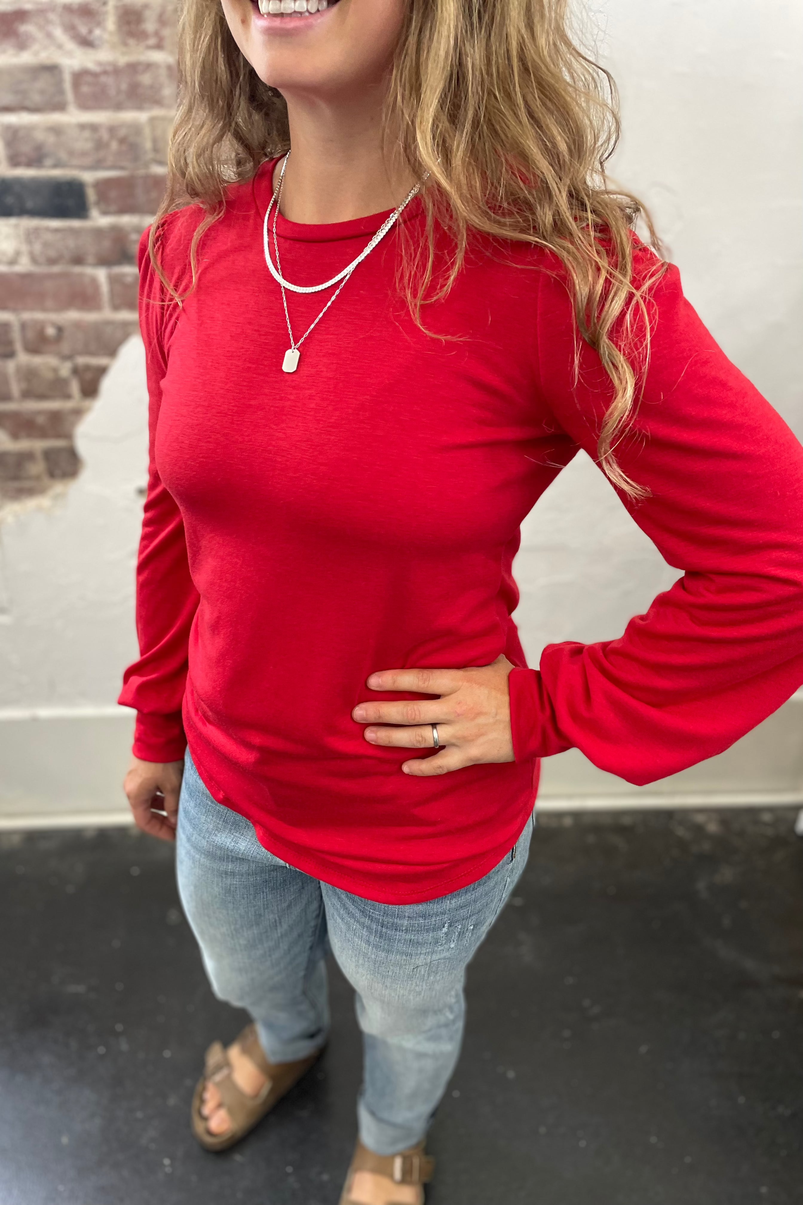 Cuffed Sleeve Long Sleeve Top