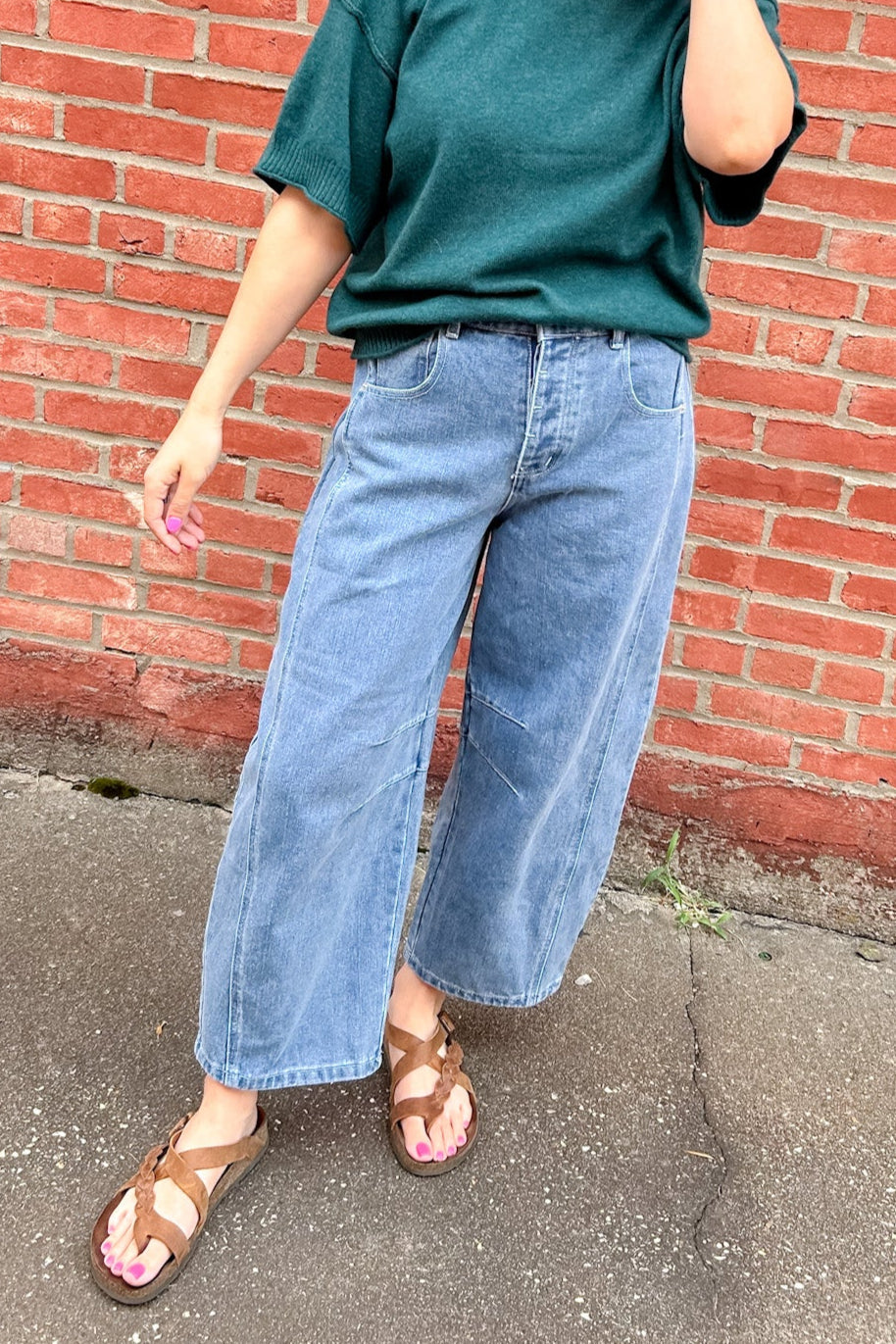 The Maria Light Wash Barrel Jeans offer a chic, modern silhouette with their trendy barrel style and soft light wash. Perfectly versatile, they elevate your look for a stylish date night or a fun girls' day out. These jeans combine comfort and sophistication, making them an effortless choice to express your personal style.