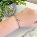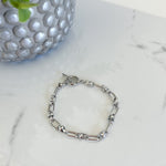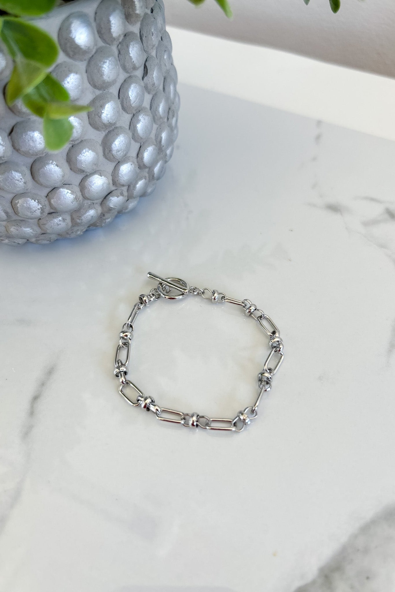 This rectangle toggle bracelet features a sturdy design that is both fashionable and functional. Its unique shape adds an elegant touch to any outfit, while the secure toggle closure ensures it stays in place all day. Available in gold and silver.