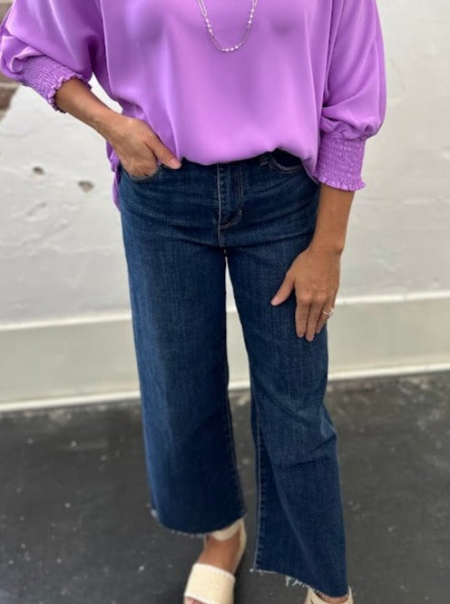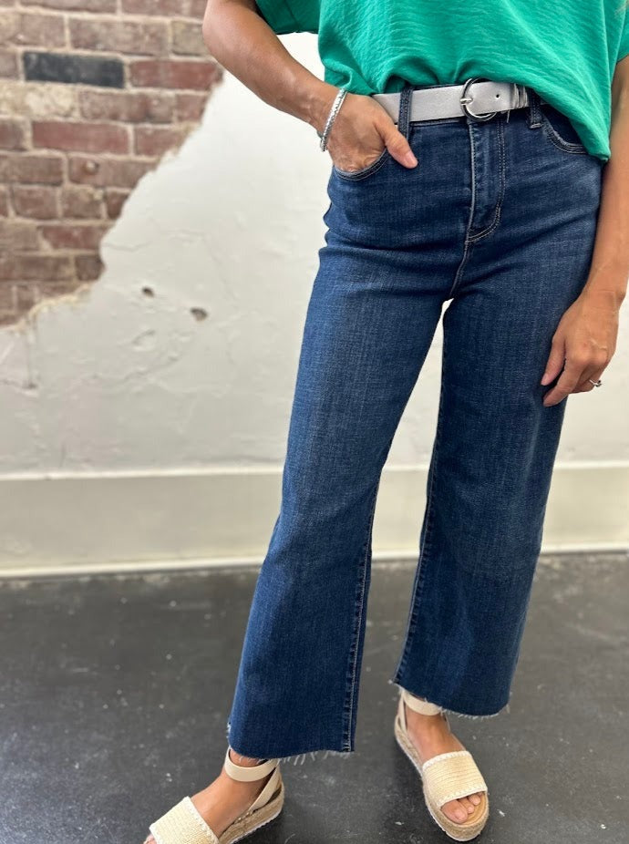 We love a new Liverpool style! Featuring the Stride Hi Rise Crop with Cut Hem - a high-waisted fit that not only flatters your figure, but also offers all-day comfort. Crafted from premium crosshatch denim, these jeans boast a unique texture that sets them apart from the rest. The wide-leg style provides a trendy look while the raw hem adds a stylish touch. Whether you're running errands or hitting the town for a date night, these jeans are your ticket to chic confidence. Add them to your closet today!