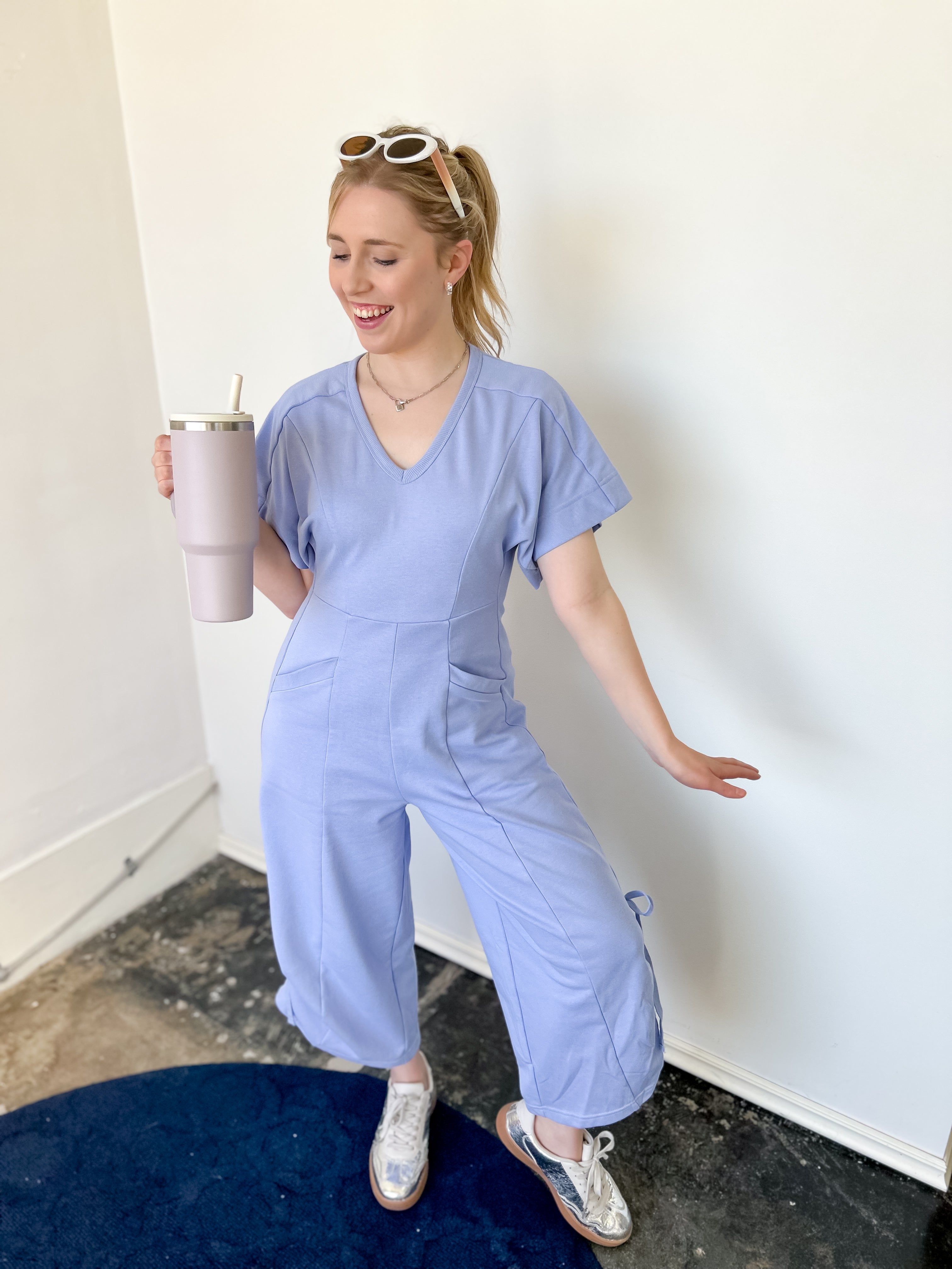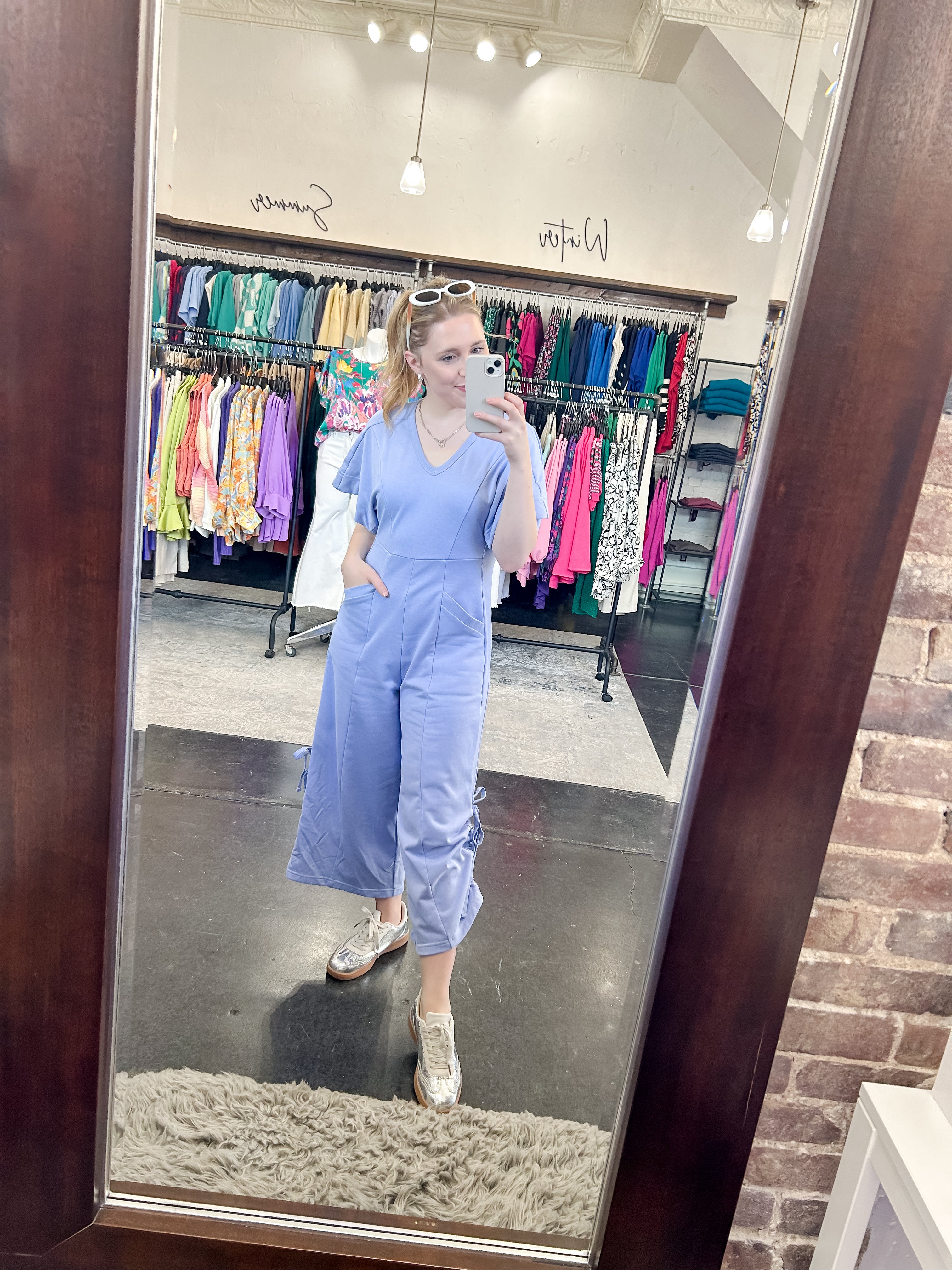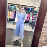 Pair style with ease in our Mind Over Matter Jumpsuit. In a chambray blue hue, this jumpsuit features a flattering v-neckline, short sleeves, and wide leg with a slight crop. Plus, a zippered back closure and visible seam details add a touch of charm. Style with sneakers or sandals for an easy, vacation-ready outfit!