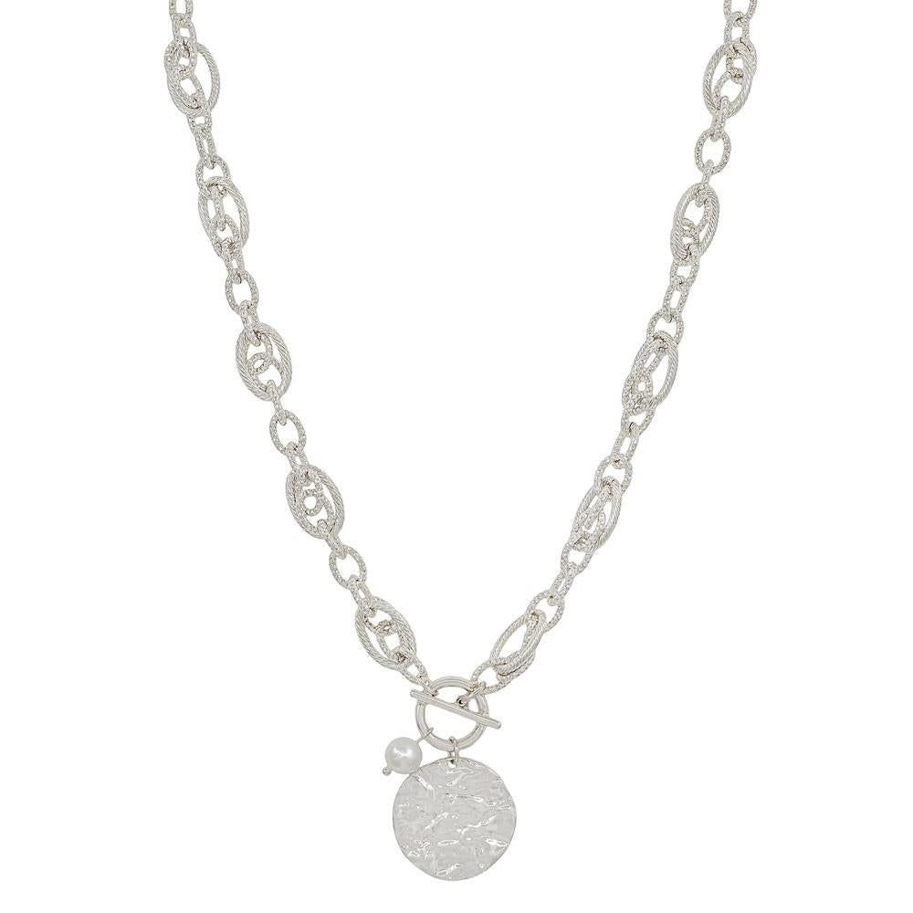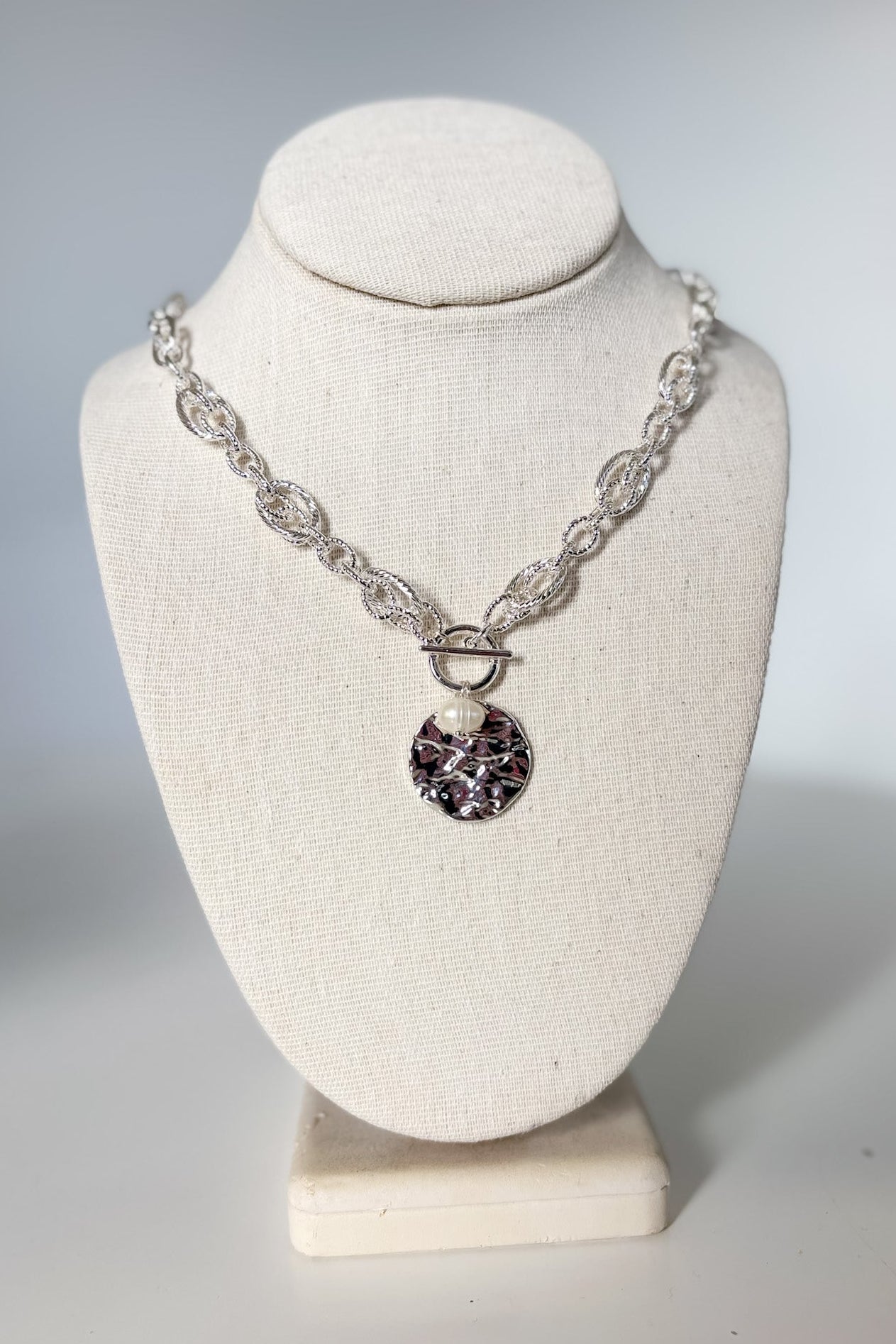 Elevate your necklace collection with this refined pearl pendant, designed for the discerning eye. Featuring a lustrous pearl set in sterling silver with subtle texturing, this coin-sized pendant strikes the perfect balance between statement and versatility. The secure toggle closure ensures reliable wear, while its compact scale makes it ideal for layering with other pieces or wearing solo. A timeless addition that transitions effortlessly from day to evening.