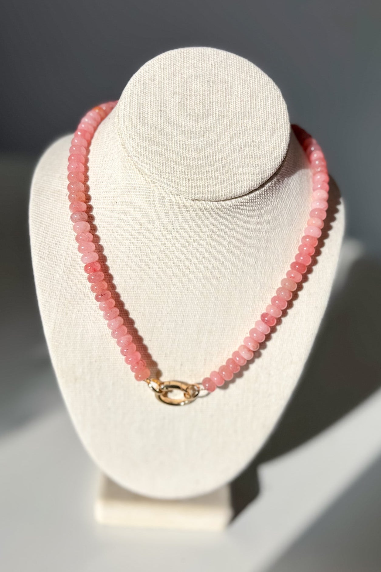 Elevate your jewelry collection with this refined pink beaded necklace, designed as a versatile layering piece. Delicate pink beads are strung together and secured with a reliable clasp closure, making it both beautiful and practical. Perfect for mixing and matching with other necklaces or wearing solo, this piece adds a subtle pop of color and understated elegance to any ensemble. Whether you're dressing up for an occasion or enhancing your everyday style, this necklace brings a touch of sophistication to your look.