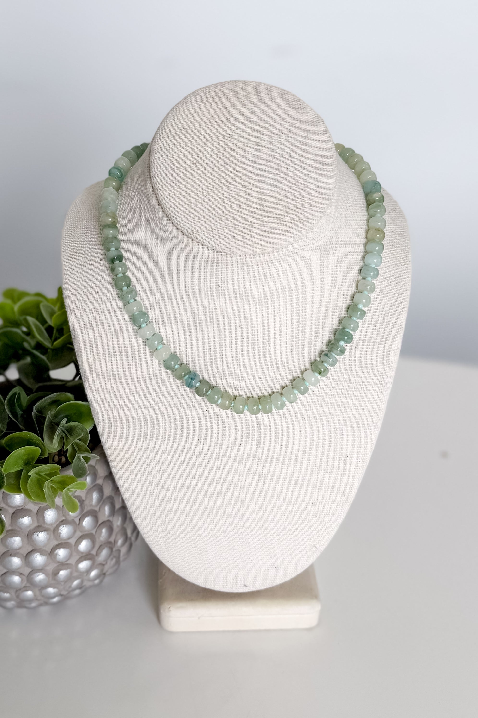 Elevate your jewelry collection with this striking metal bead necklace in a delicate green hue. Crafted with polished beads that catch the light beautifully, this piece seamlessly transitions from day to evening wear. Its refined design makes it an ideal layering necklace—wear it solo for understated elegance or combine it with other delicate chains for a curated, contemporary look. Perfect for those who appreciate timeless sophistication with a modern edge.