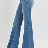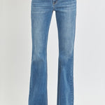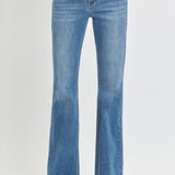 Introducing our Blair Mid Rise Flare Jeans from Risen, featuring a medium wash and a flattering flare style. With a mid rise waist, these jeans offer a classy look for any occasion. Elevate your wardrobe with these timeless and versatile jeans.