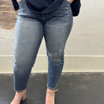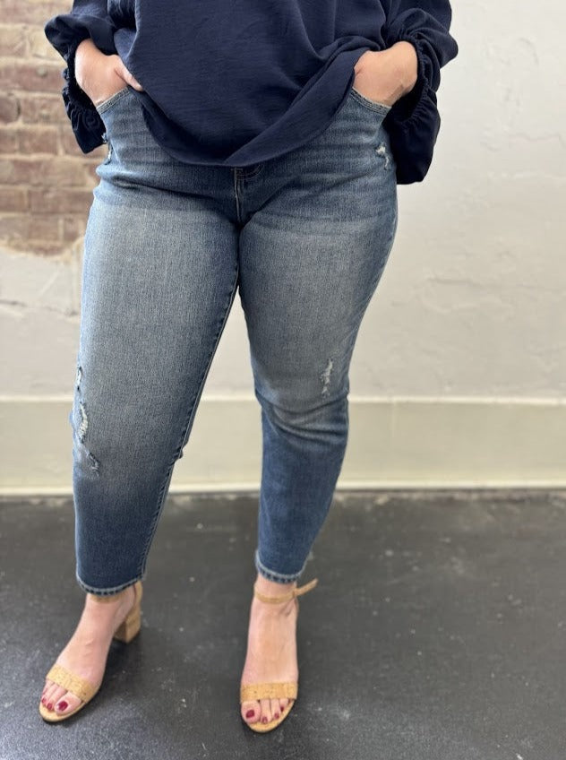 Introducing the Liverpool Kennedy Crop Straight Leg - a classic fit with a modern twist. This straight leg jean features vintage-like characteristics that give a trendy look while still providing ultimate comfort. We love the destructed hem that provides the ideal amount of edge. The slight crop makes these perfect for wearing with sneakers, pumps, or sandals! Pair with your favorite tee or dress it up with a fun blouse. Add these to your denim collection today and prepare to fall in love!