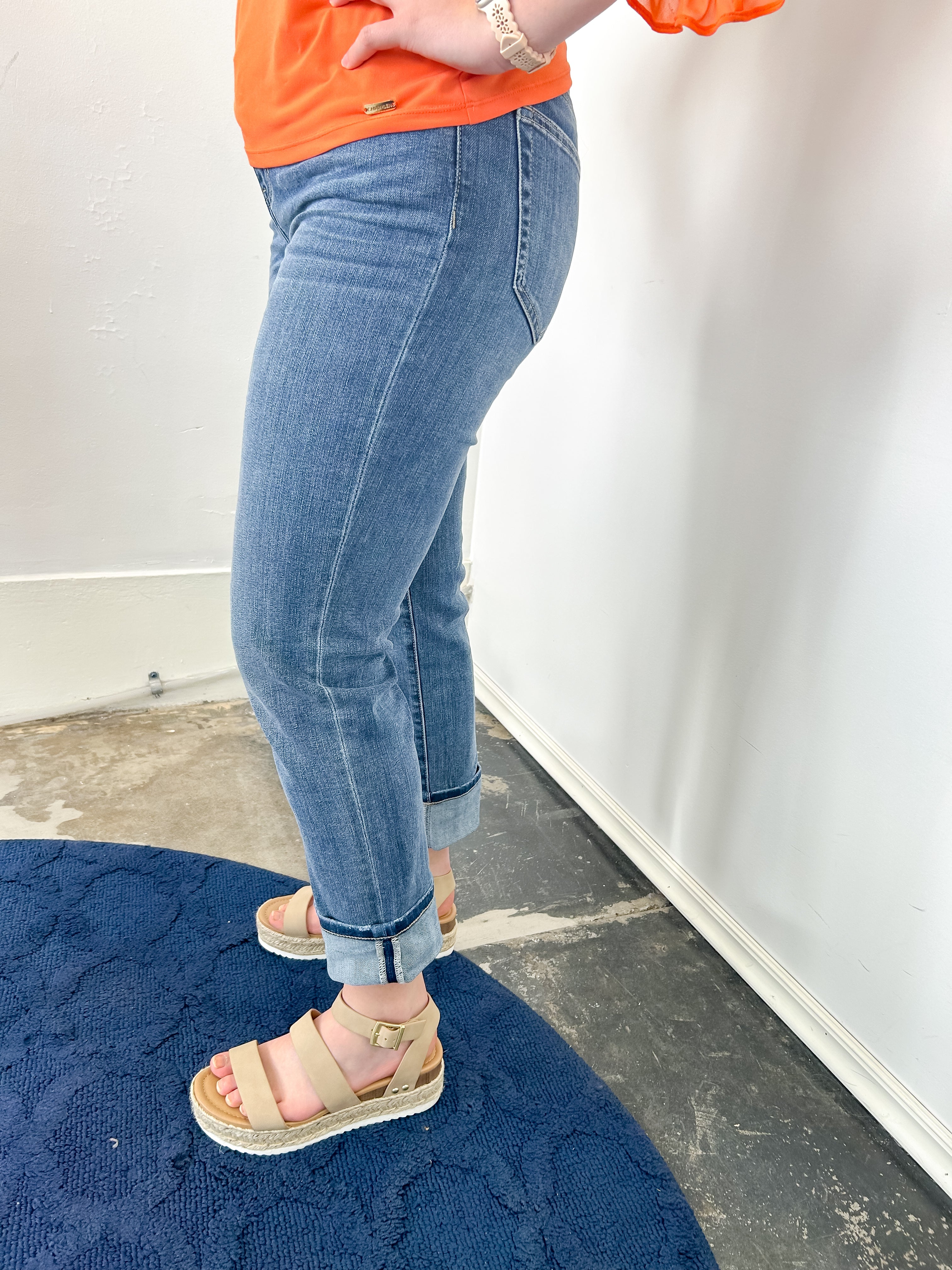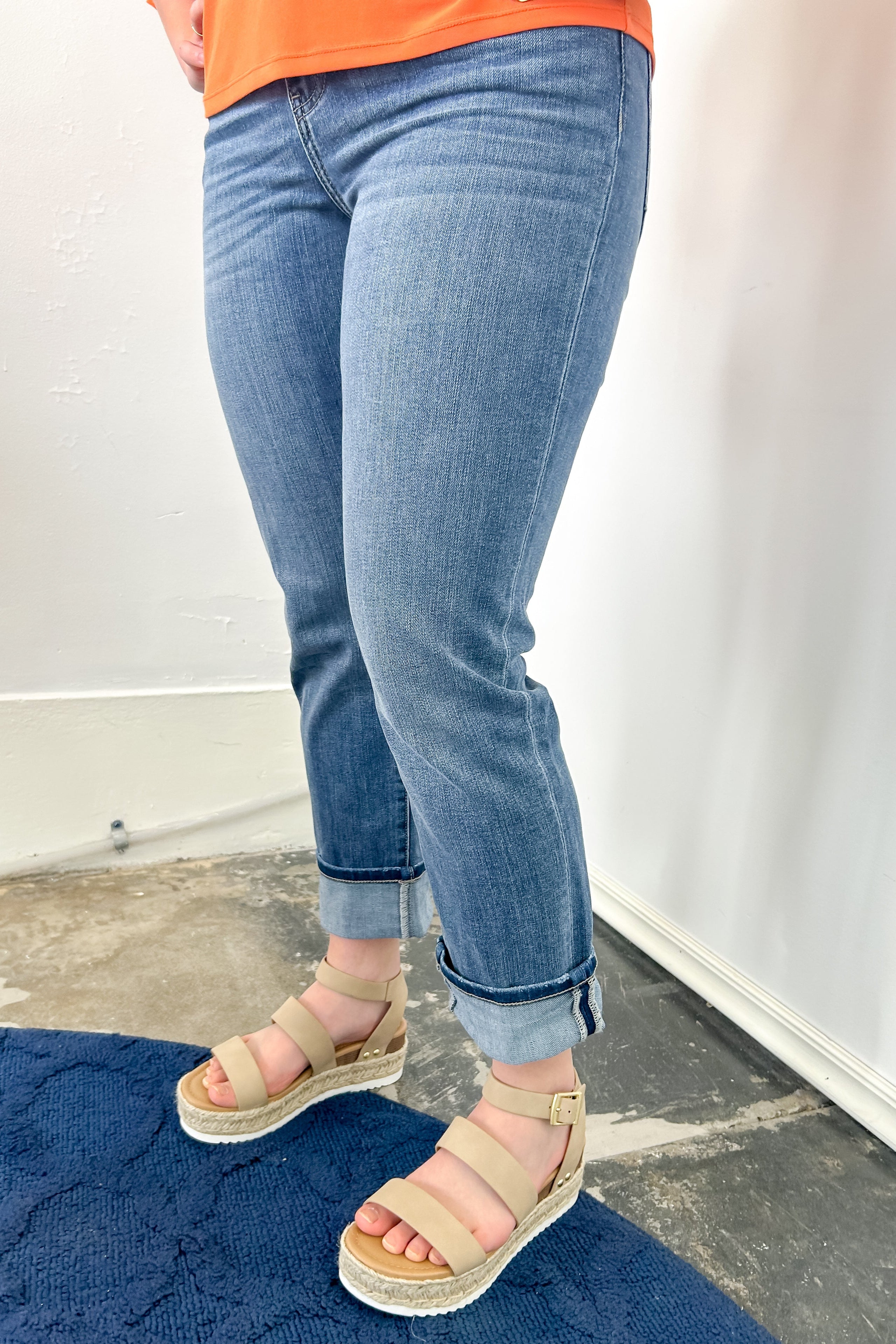Expertly crafted with a medium wash and cuffed detailing, the Marley Cuffed Boyfriend Jeans offer a chic and timeless style. The mid rise fit provides comfort while the non-distressed feature offers a clean and sophisticated look. Perfect for any casual or formal occasion!