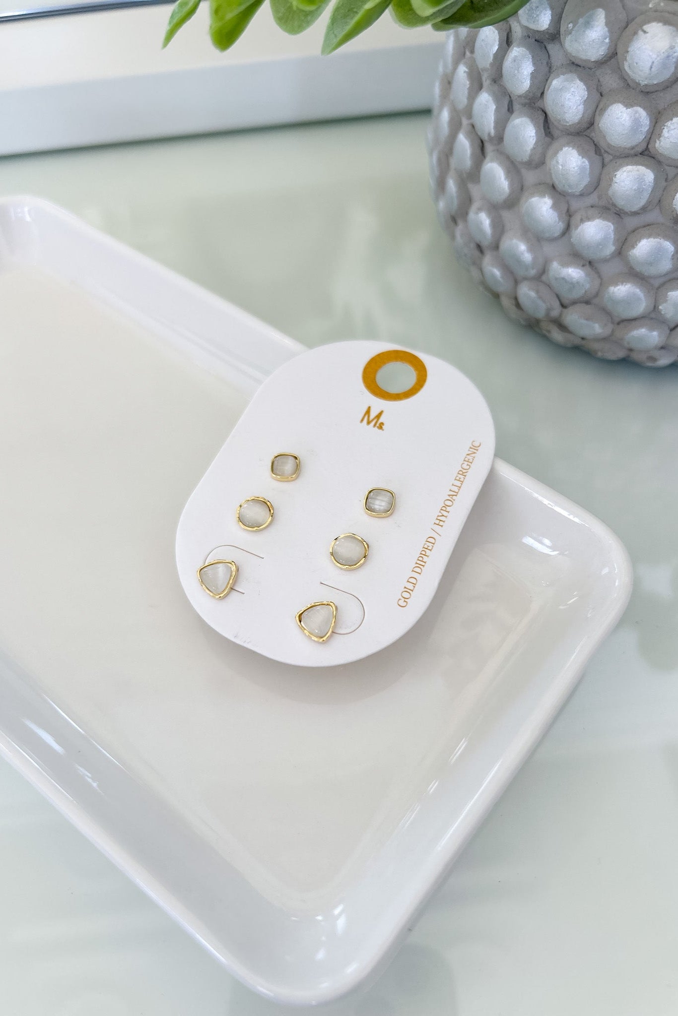 Dainty and chic, this 3-pair set of stud earrings includes three different shapes. Perfect for everyday wear!