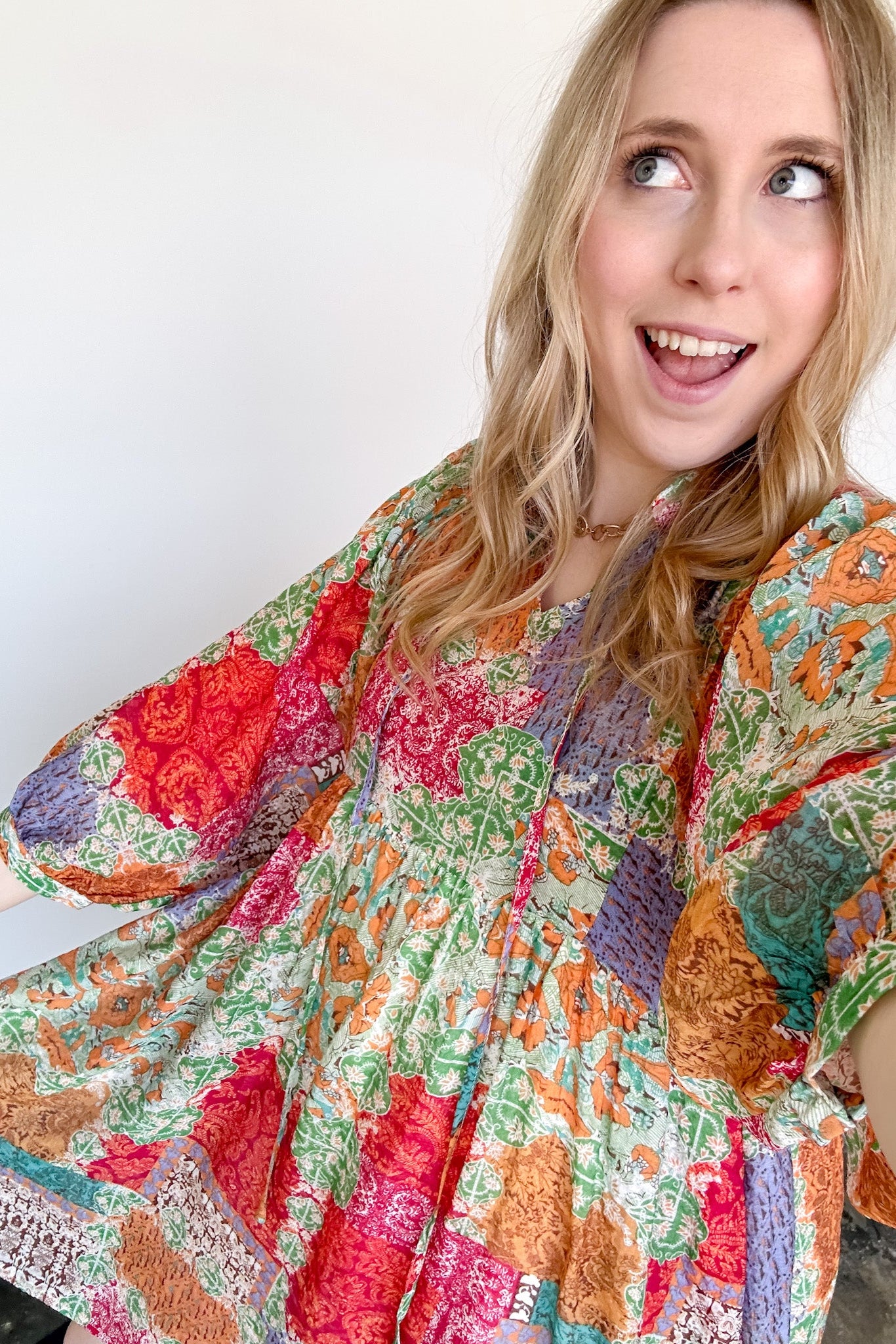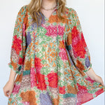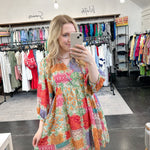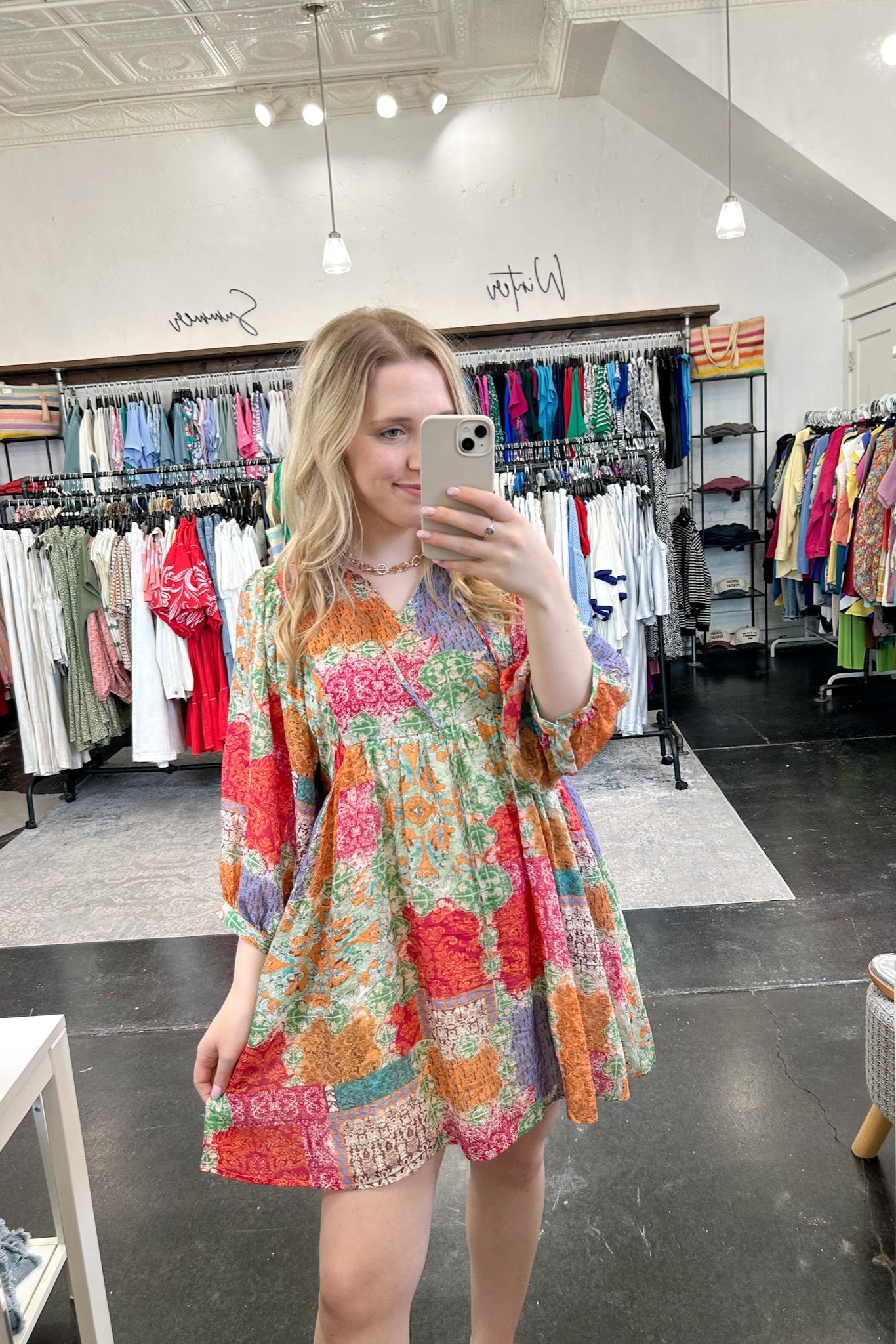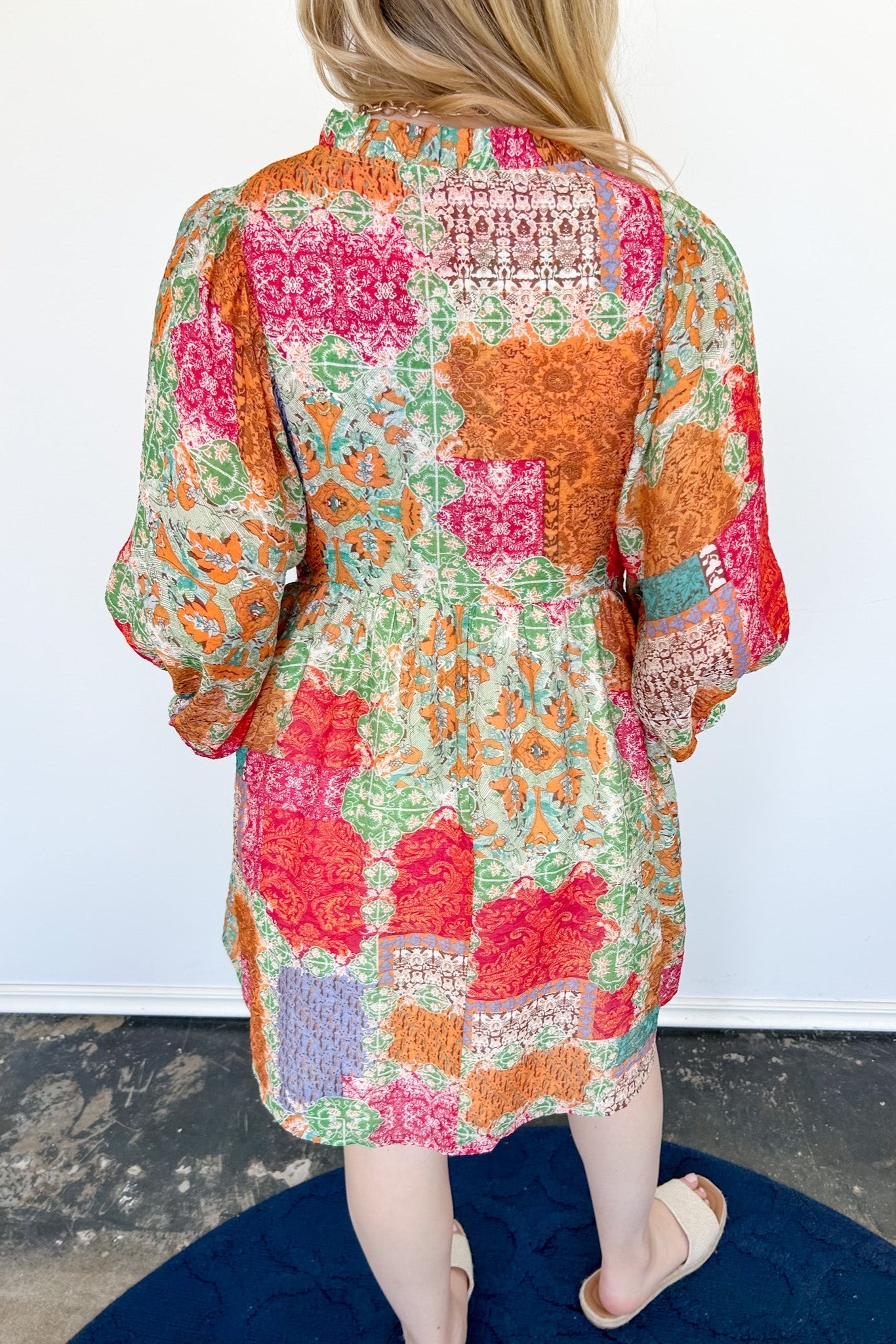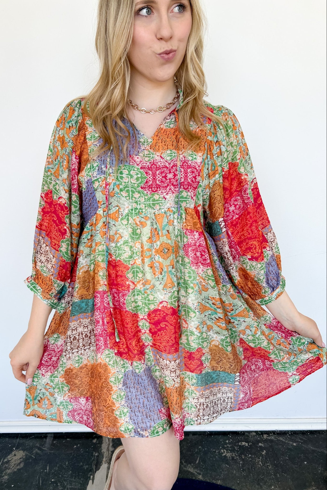 Get ready to stand out with our Up and Away Printed Dress! With a fun print and colorful design, this dress is perfect for any occasion. Its tiered look and flowy fit will make you feel stylish and comfortable. The v neckline and above the knee length add the perfect touch of flirty charm. Get ready to take your style up and away!
