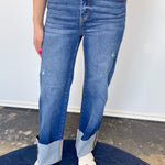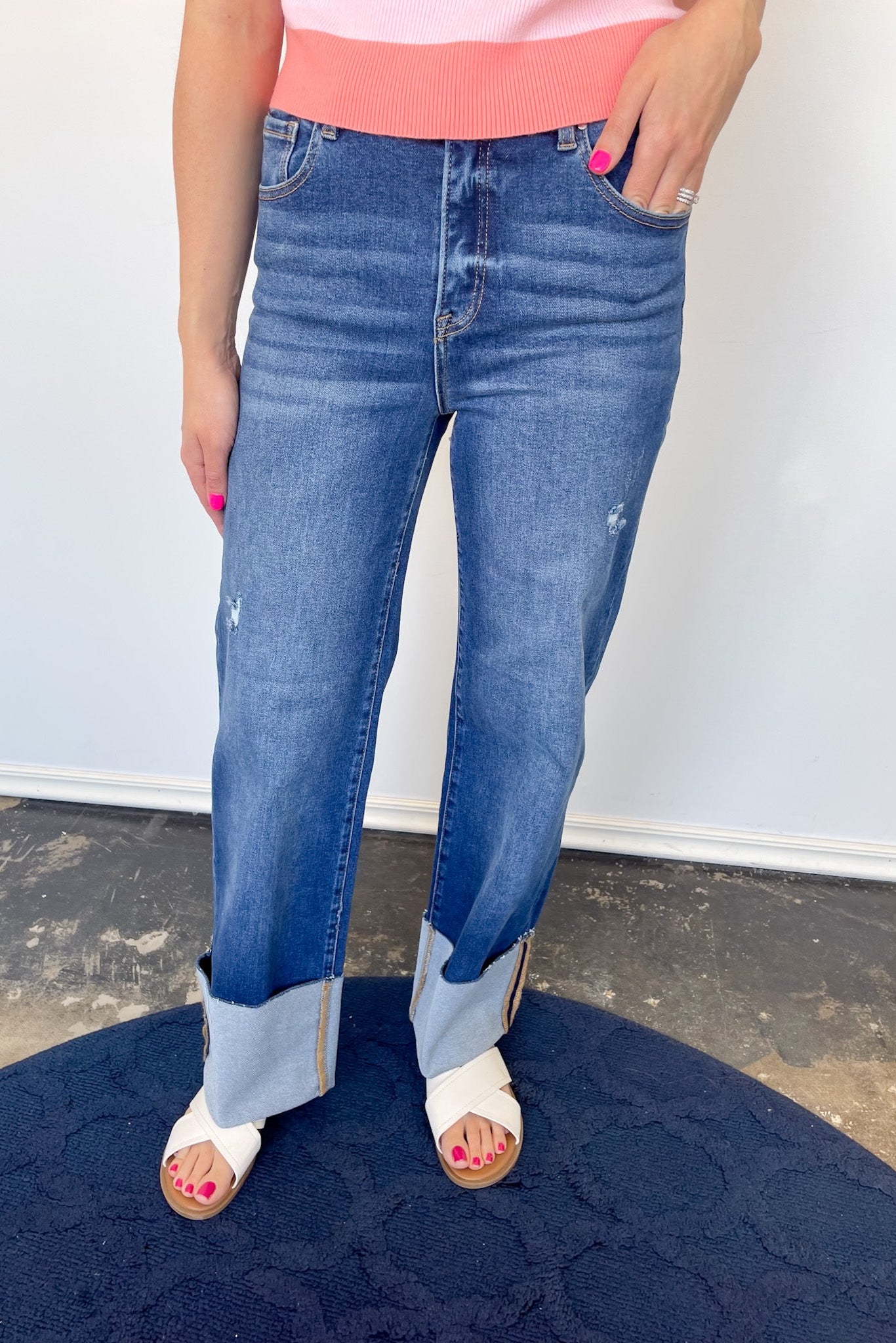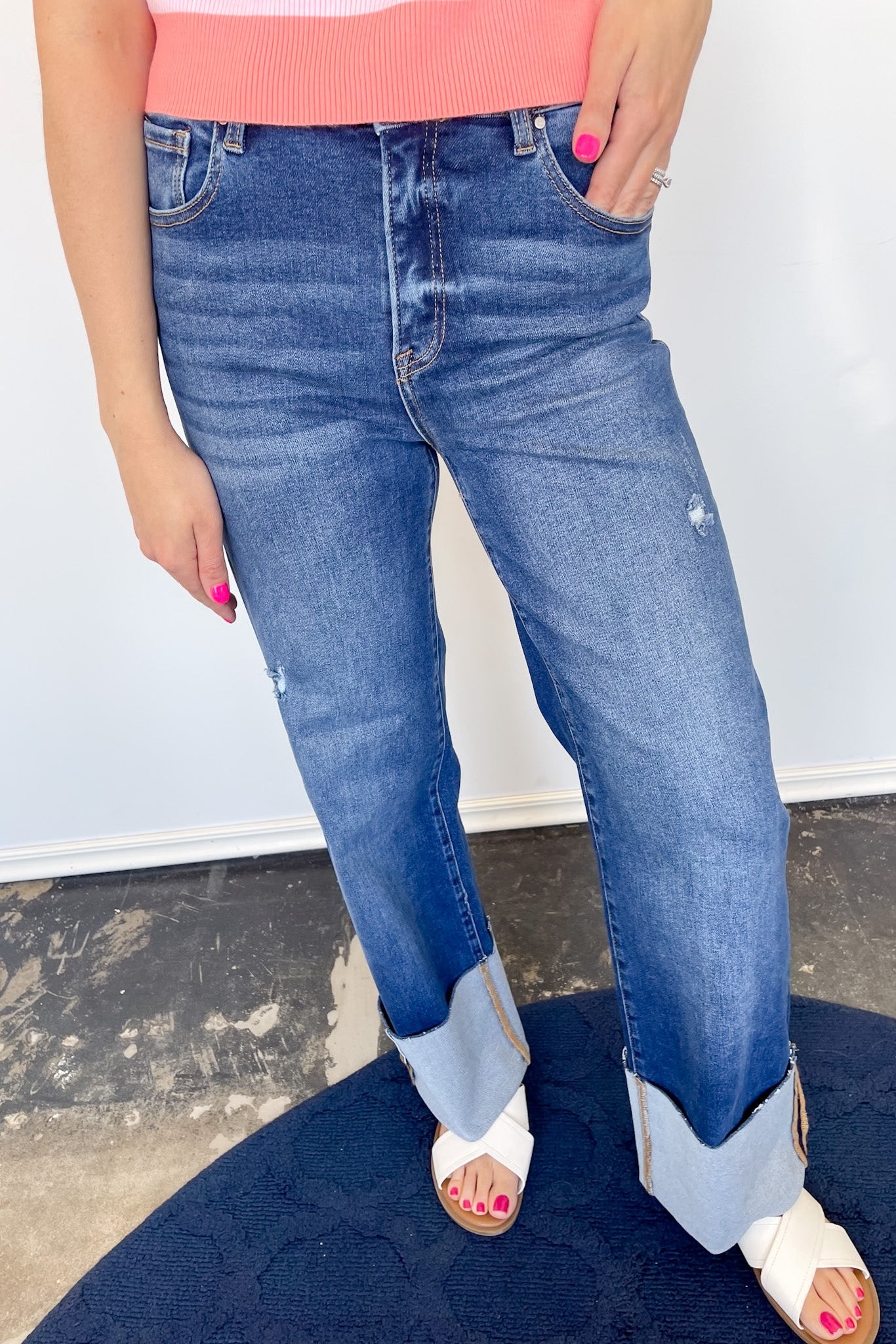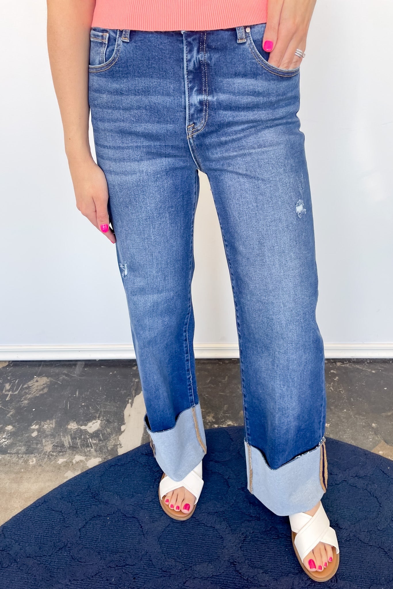Get ready to rock your wardrobe with these Willow Wide Cuff Jeans by Risen! Featuring a dark denim wash and wide leg fit, these cuffed jeans offer ultimate comfort and style. Plus, with functional pockets and a non-distressed design, you can elevate any outfit without sacrificing practicality. Perfect for the fashion-forward yet practical individual.
