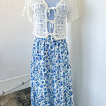The Ava Floral Skirt is a must-have for any fashion-forward wardrobe. With its beautiful floral print in shades of blue and white, this skirt exudes elegance and sophistication. Its long length and layered design add a touch of femininity, making it perfect for any occasion. Elevate your style with this stunning piece!