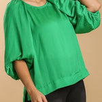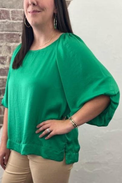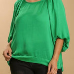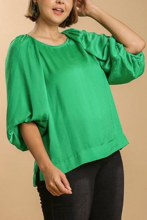 We all love a fun and flattering top! Bubble sleeves and a round neckline give this shirt the perfect balance of work and play. Pair with neutral colored slacks and bold earrings for a chic look that can go straight from the office to date night.