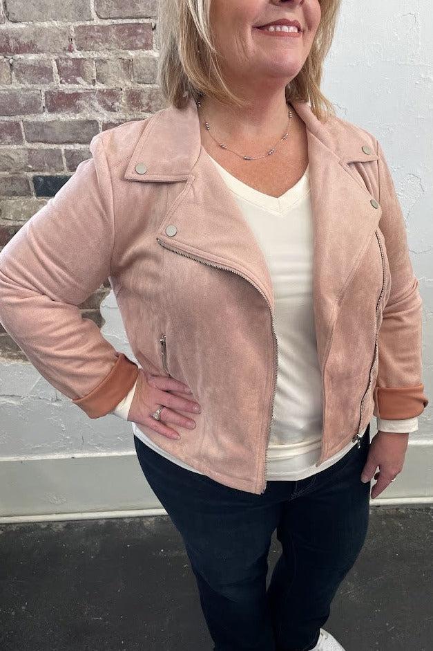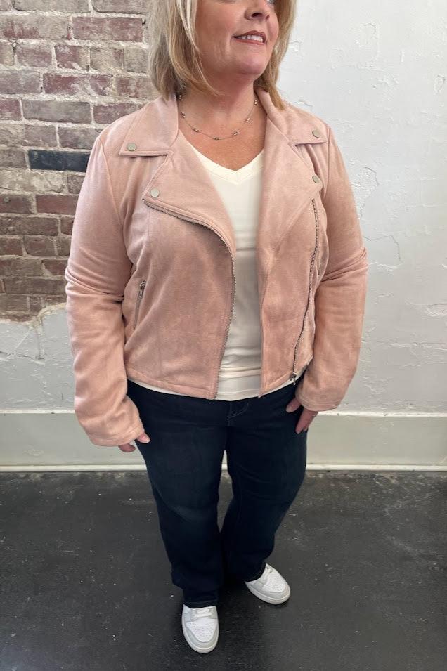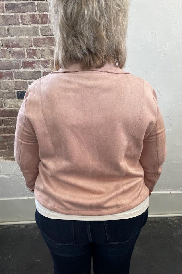 Get ready to show off your sleek style in our Suede Moto Jacket! Featuring a fun, stylish collar and decorative buttons, this jacket is sure to make a statement wherever you go! Its perfect fit and soft texture will have you feeling like your best self all day long. Pair with a skirt, dress, or jumpsuit for an outfit that can rock so many different occasions.