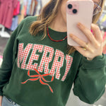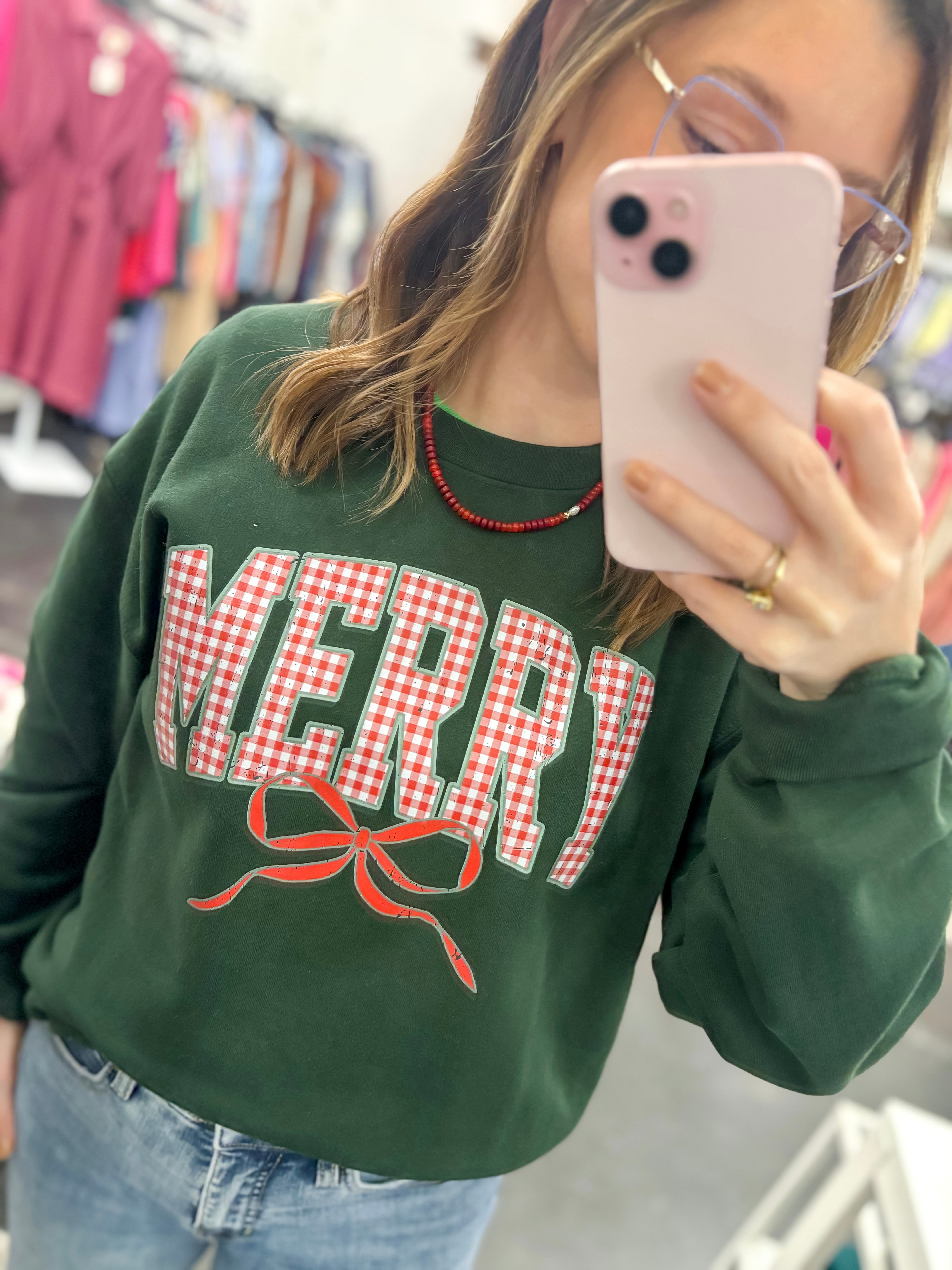 Gingham, bows, and Christmas? What a cute trio all combined into one comfy sweatshirt! Layer it oversized for maximum comfort and that effortlessly cool vibe. Perfect for holiday parties, winter lounging, or getting into the spirit of Christmas. Grab yours while supplies last—this festive favorite won't stick around long.