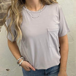 Say hello to effortless style and comfort with our Basically Yours Pocket Tee! Crafted from luxurious bamboo, this round-neck tee is a must-have essential for any wardrobe. Its soft fabric and handy pocket make it both comfortable and stylish. The classic design can easily be dressed up or down! Whether you're out for the day or spending a cozy night at home, this tee will have you feeling your best. Wear it with shorts for your errand-running or style it up with denim and heels. Don't forget to accessorize!