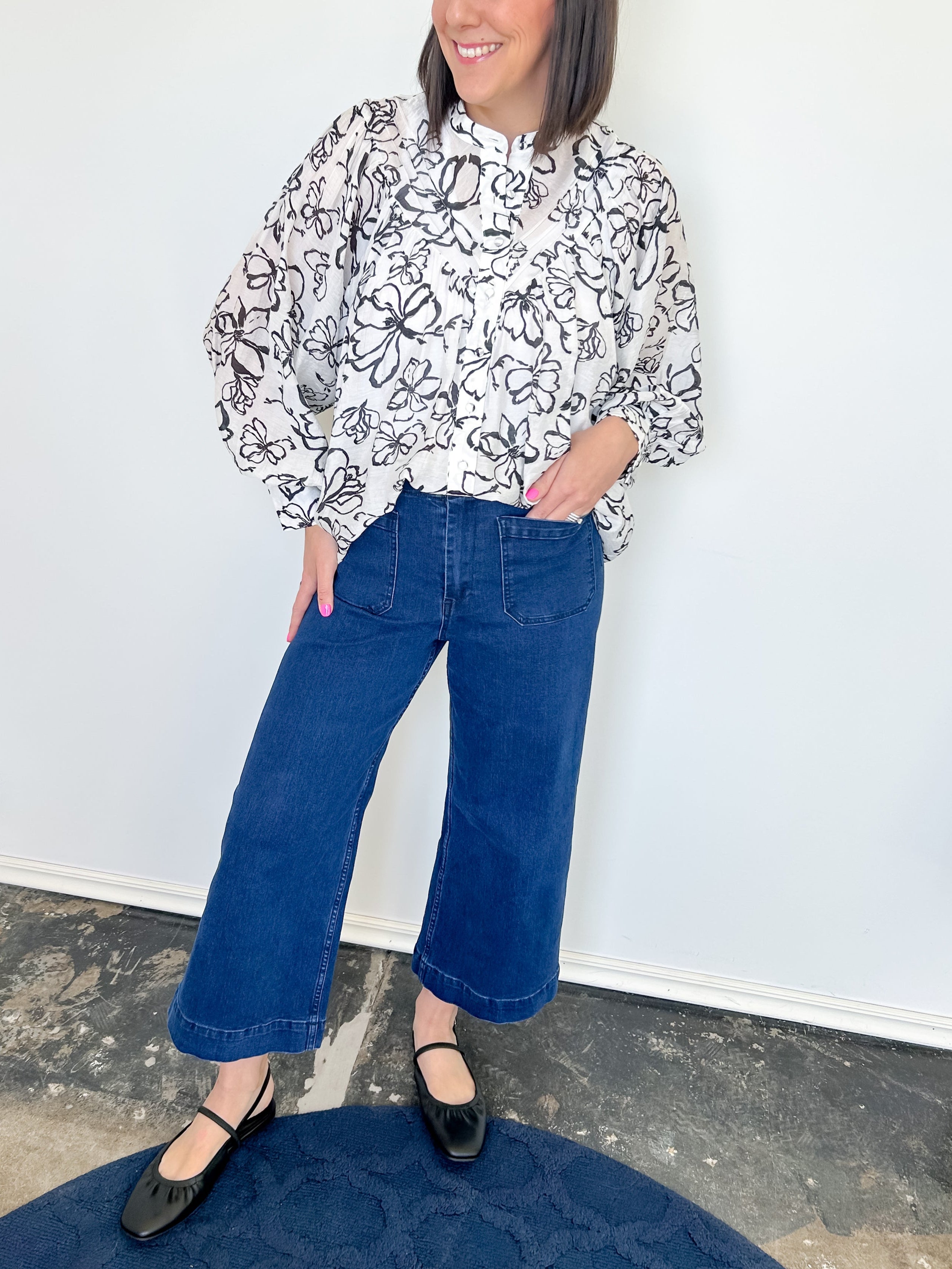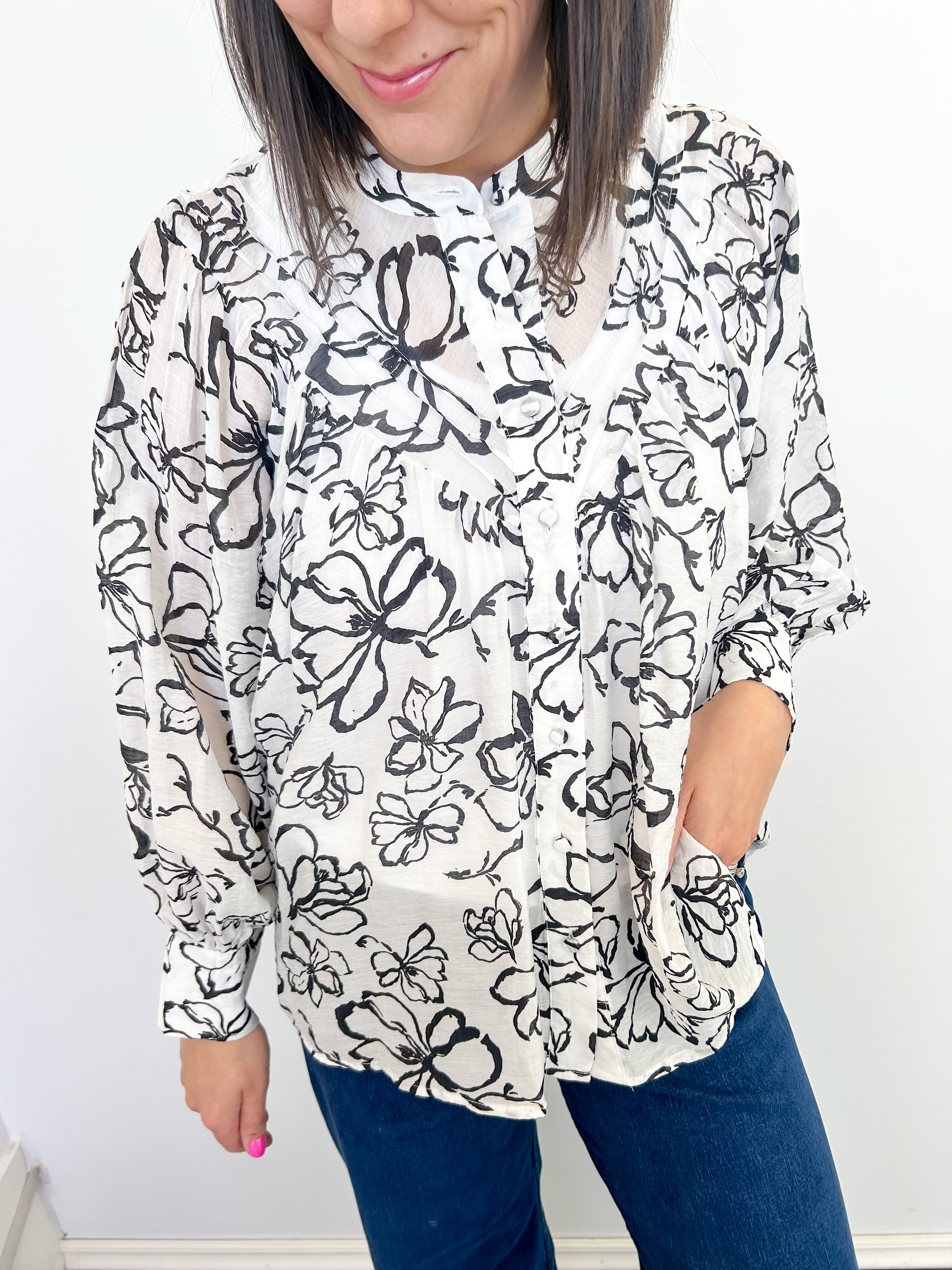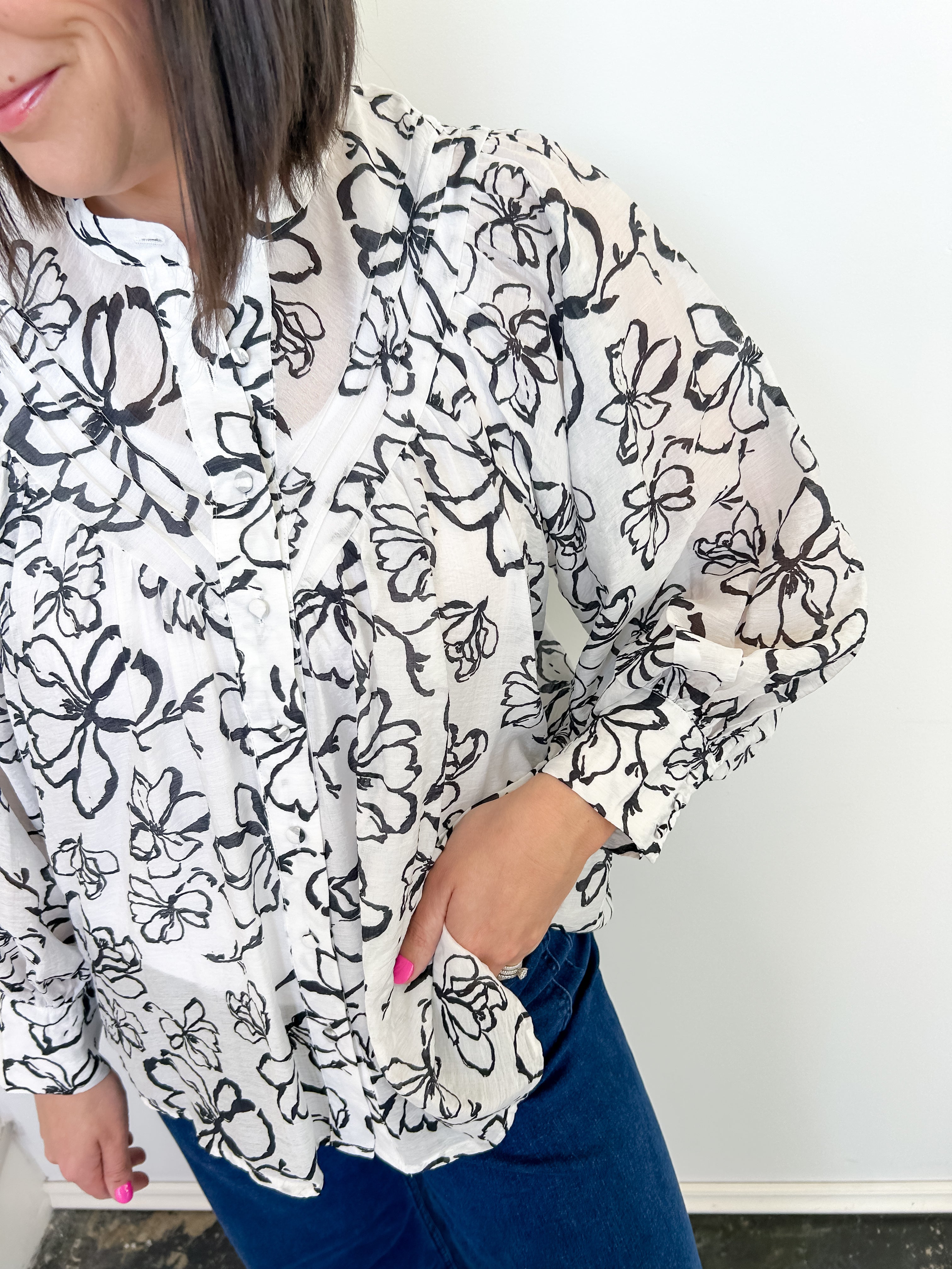 Add a classic touch to your wardrobe with our Simpler Times Floral Top! This black and white blouse features a high neckline that provides a classy, timeless look. With a button down front and puff sleeves, it is the perfect pairing of sophistication and romance. Pair with denim for an effortlessly chic outfit that is perfect for work or play!