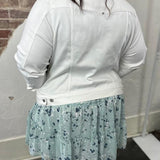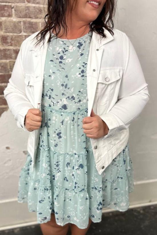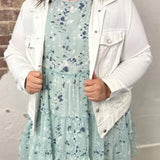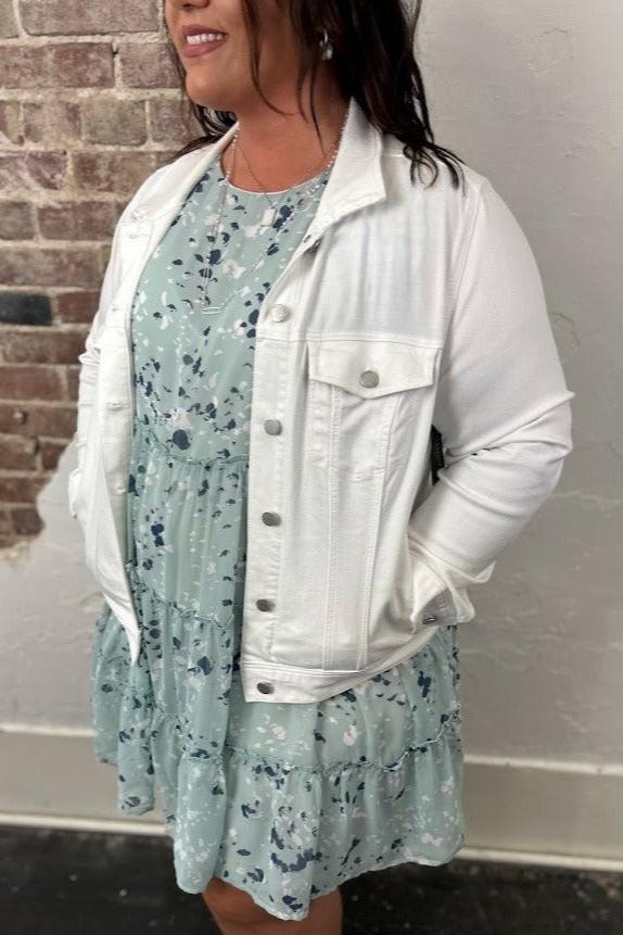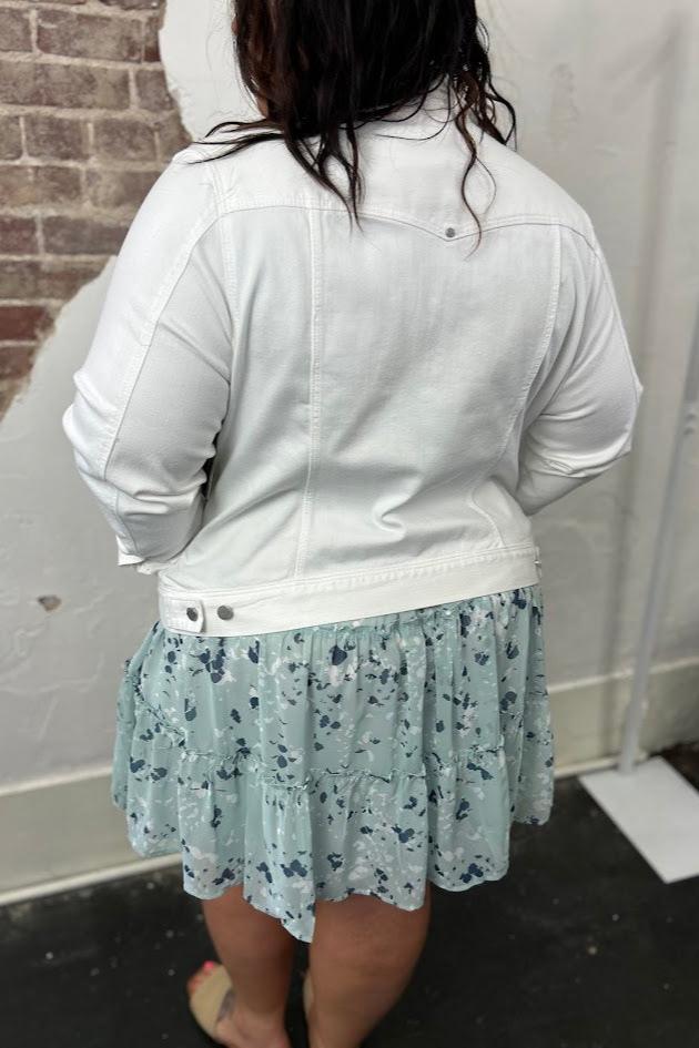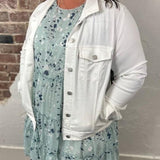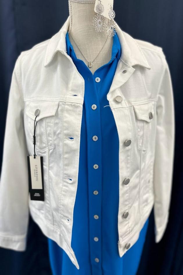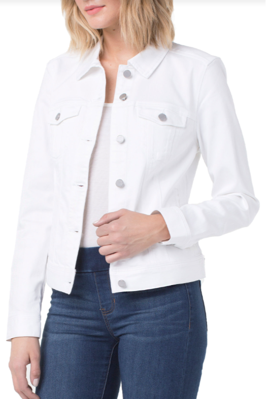 Our Liverpool classic jean jacket in a new white wash that is great for the warmer seasons! Your go-to layering item that is made with comfortable fabric that won't stretch out. Perfect as the finishing touch to any outfit, this jacket will will keep you comfortable and stylish all day long. Add this essential to your wardrobe today and get ready for endless possibilities!