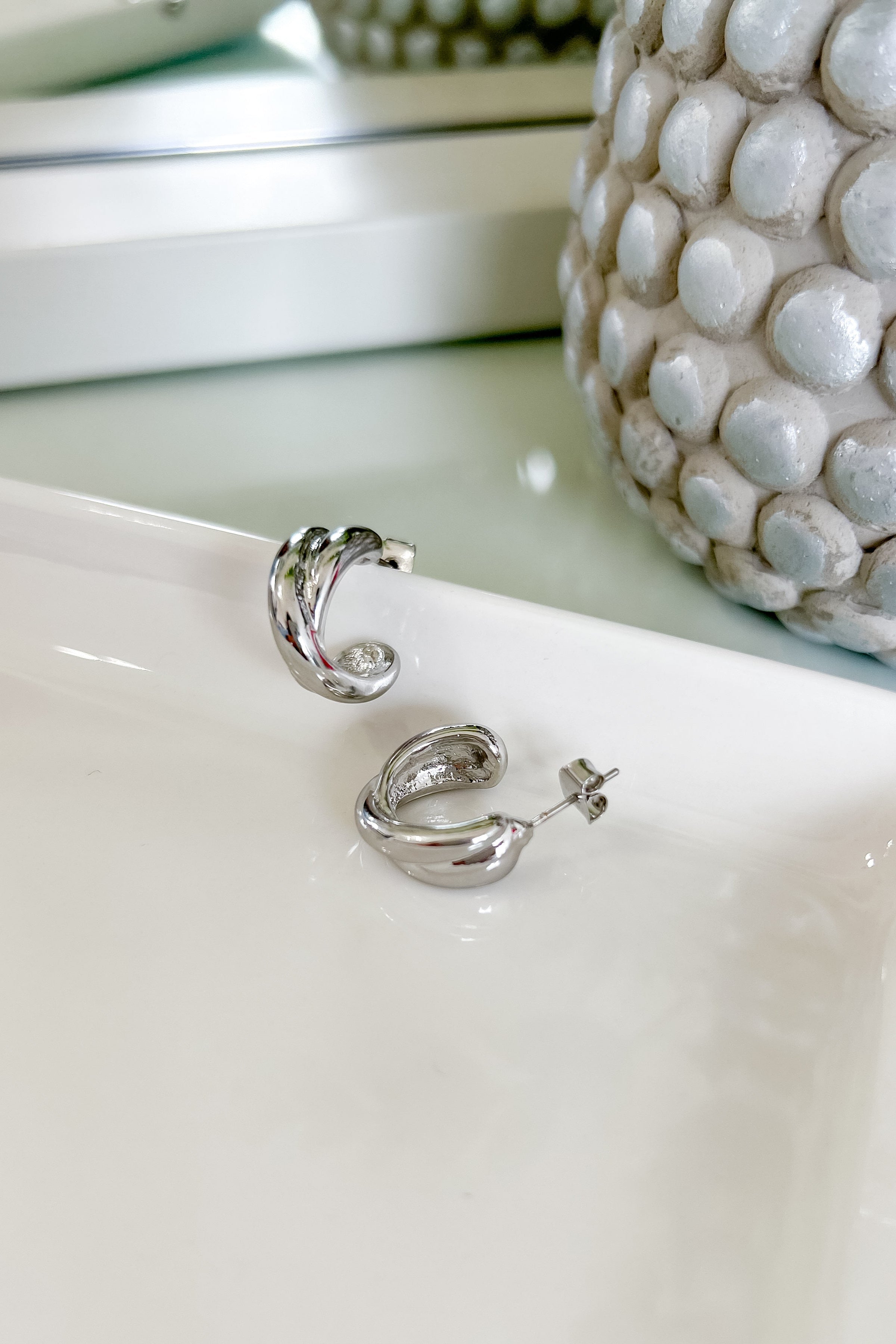 These Criss Cross Open Hoop Earrings feature a unique design of intersecting hoops that add a modern touch. Made with high-quality materials, these earrings are lightweight and comfortable to wear. Elevate your style with these versatile earrings. Available in silver