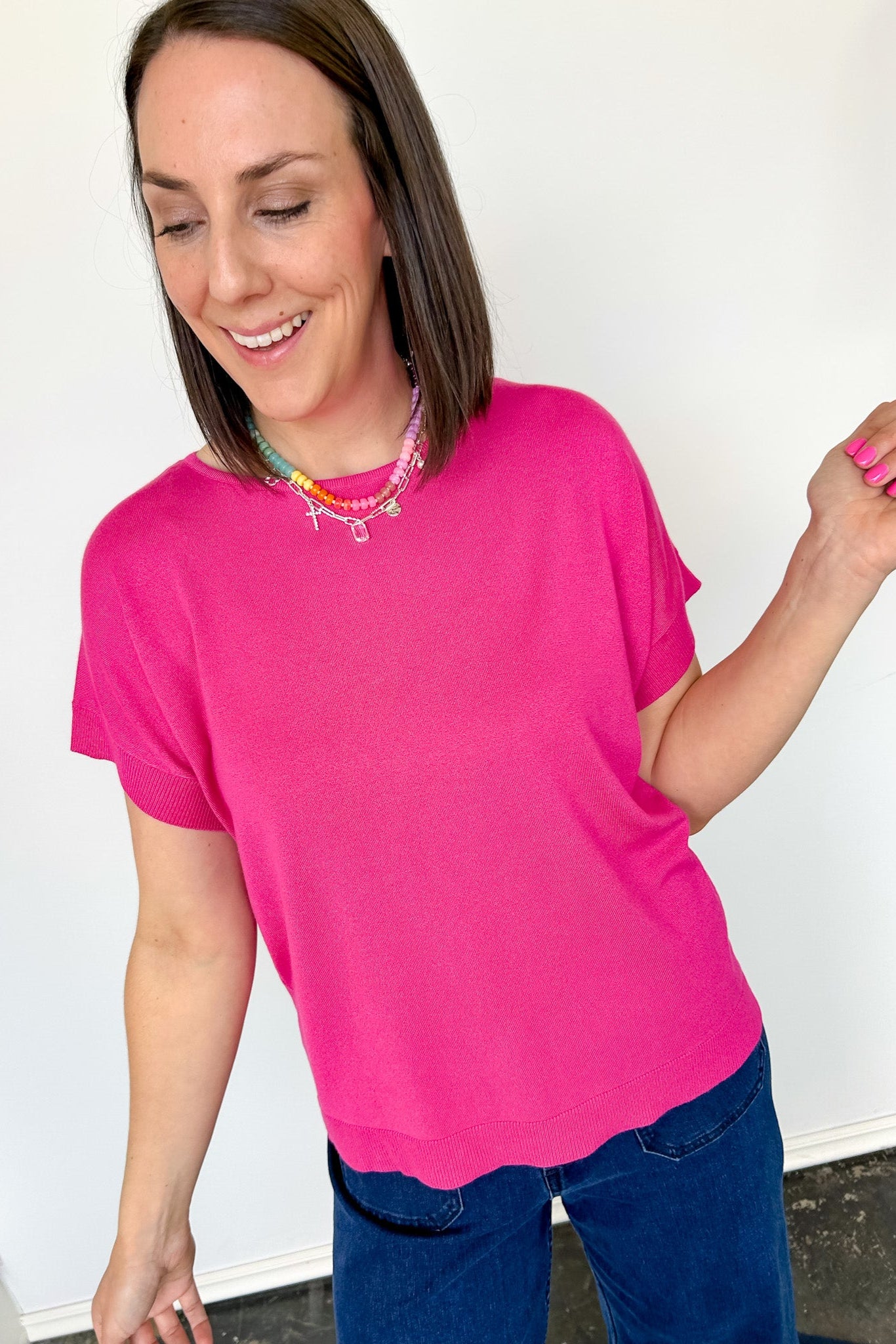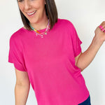 Get ready to bloom in style with our Full Bloom Wide Crew Neck Top! This magenta top features a wide crew neckline and short sleeves for a comfortable, loose fit. Perfect for any occasion, this solid color top will add a pop of color to your wardrobe. Don't miss out on this must-have!