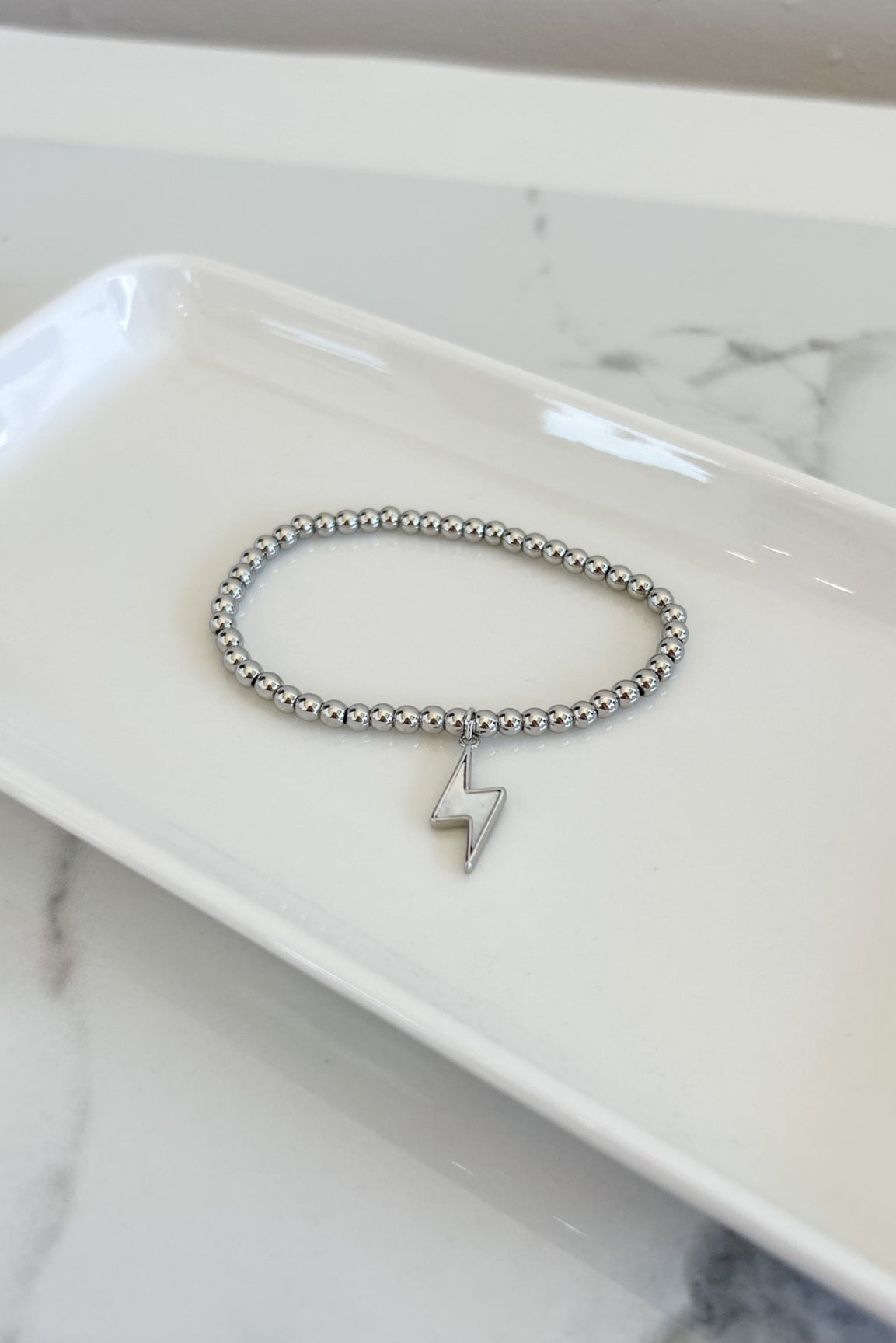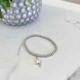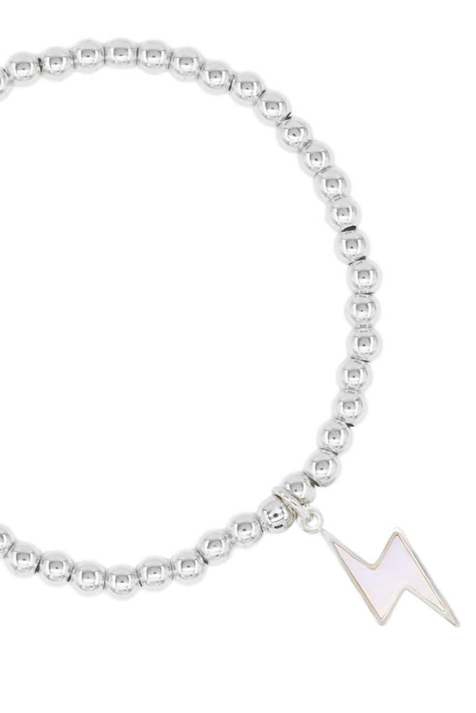This bracelet features a striking lightning charm and a stretch design for a comfortable fit. Perfect for adding a spark of style to any outfit. Available in silver.