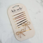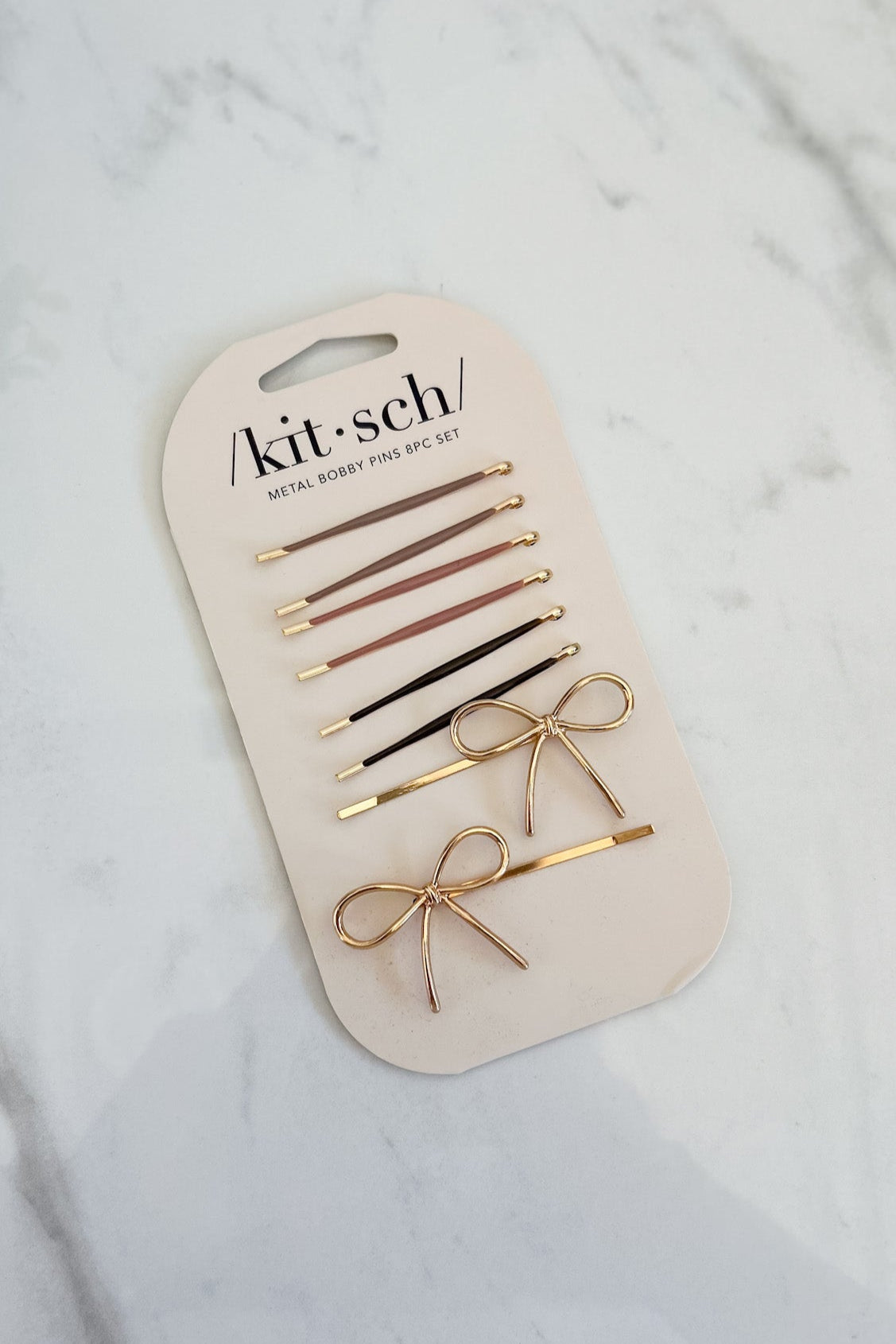 - Comes with 6 metal, enamel-coated bobby pins in assorted rose-toned hues, plus 2 petite bow bobby pins in a solid gold color