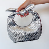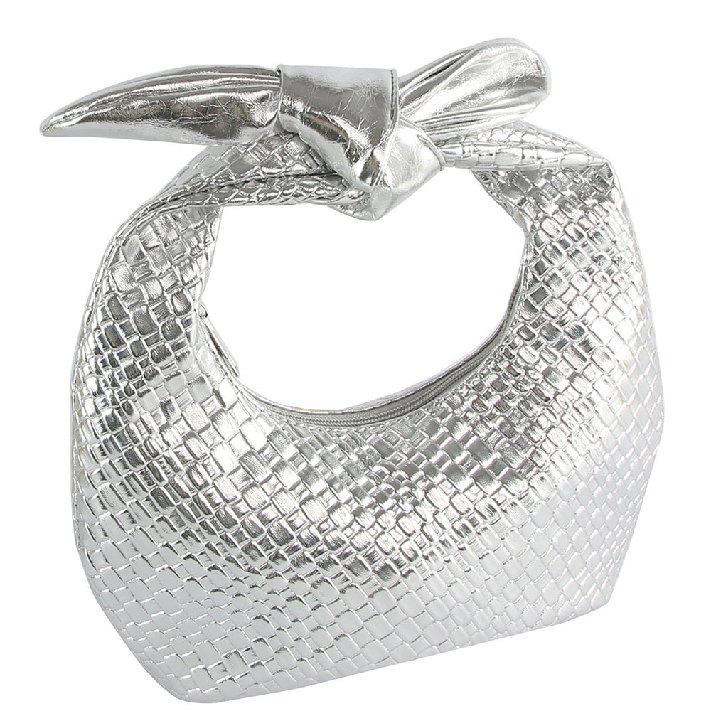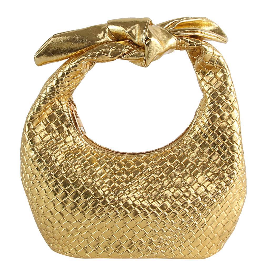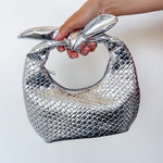 Metallic Woven Knot Handle Bag