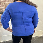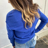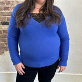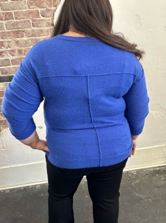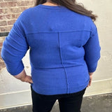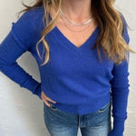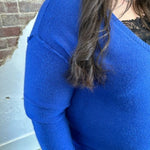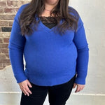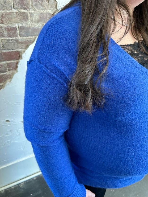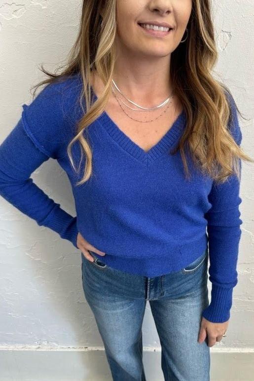 Get ready to look and feel your best in our Mountain Air Sweater! Designed with dropped shoulders for a chic and relaxed look, this V-Neck sweater is made from a soft knit material that provides ultimate comfort. The elastic hem makes it perfect for pairing with high- waisted denim or pants. We love the gorgeous blue color! Add this piece to your sweater collection today!