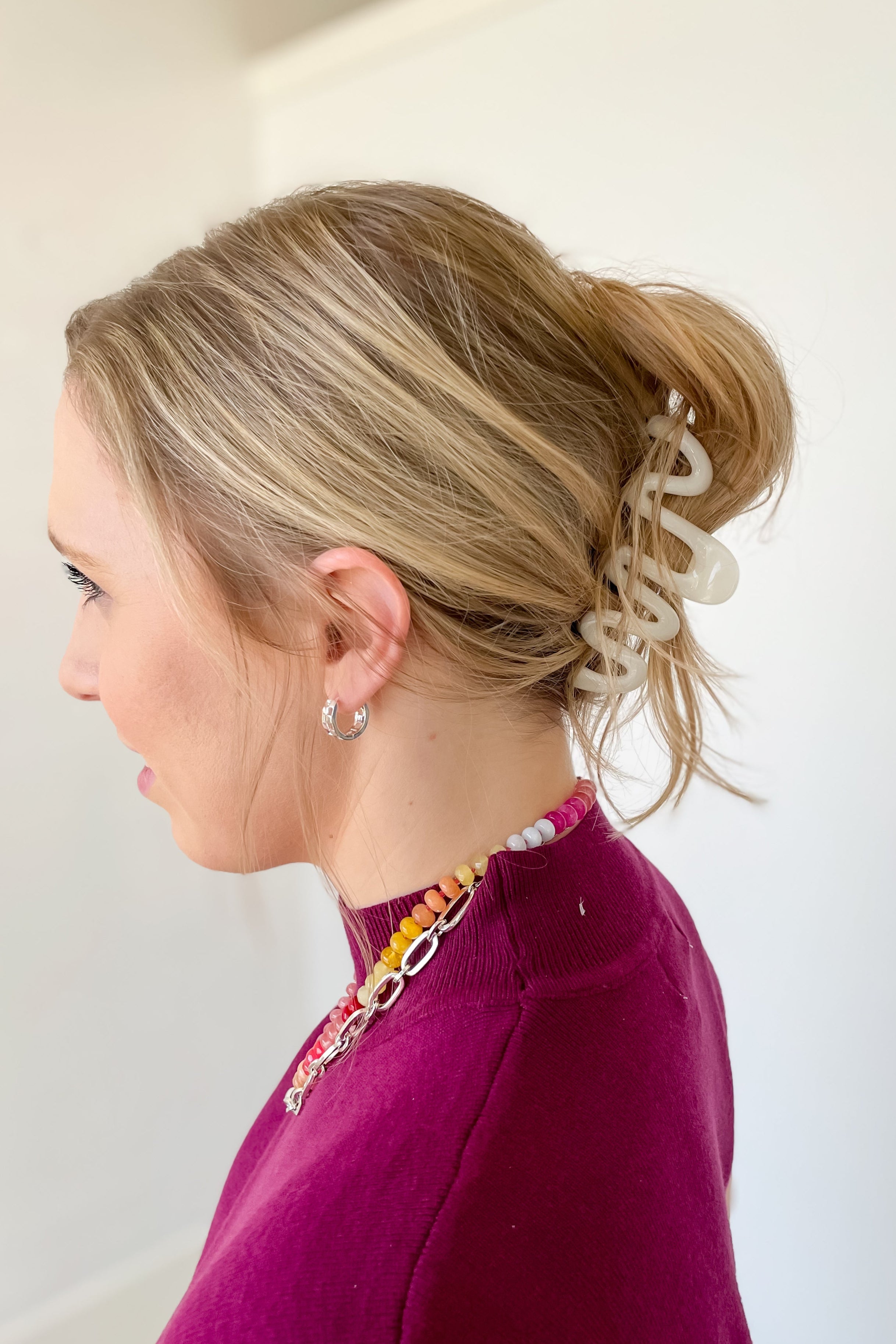 A fun, unique, wavy style claw clip to elevate your hairstyle. Assorted colors.