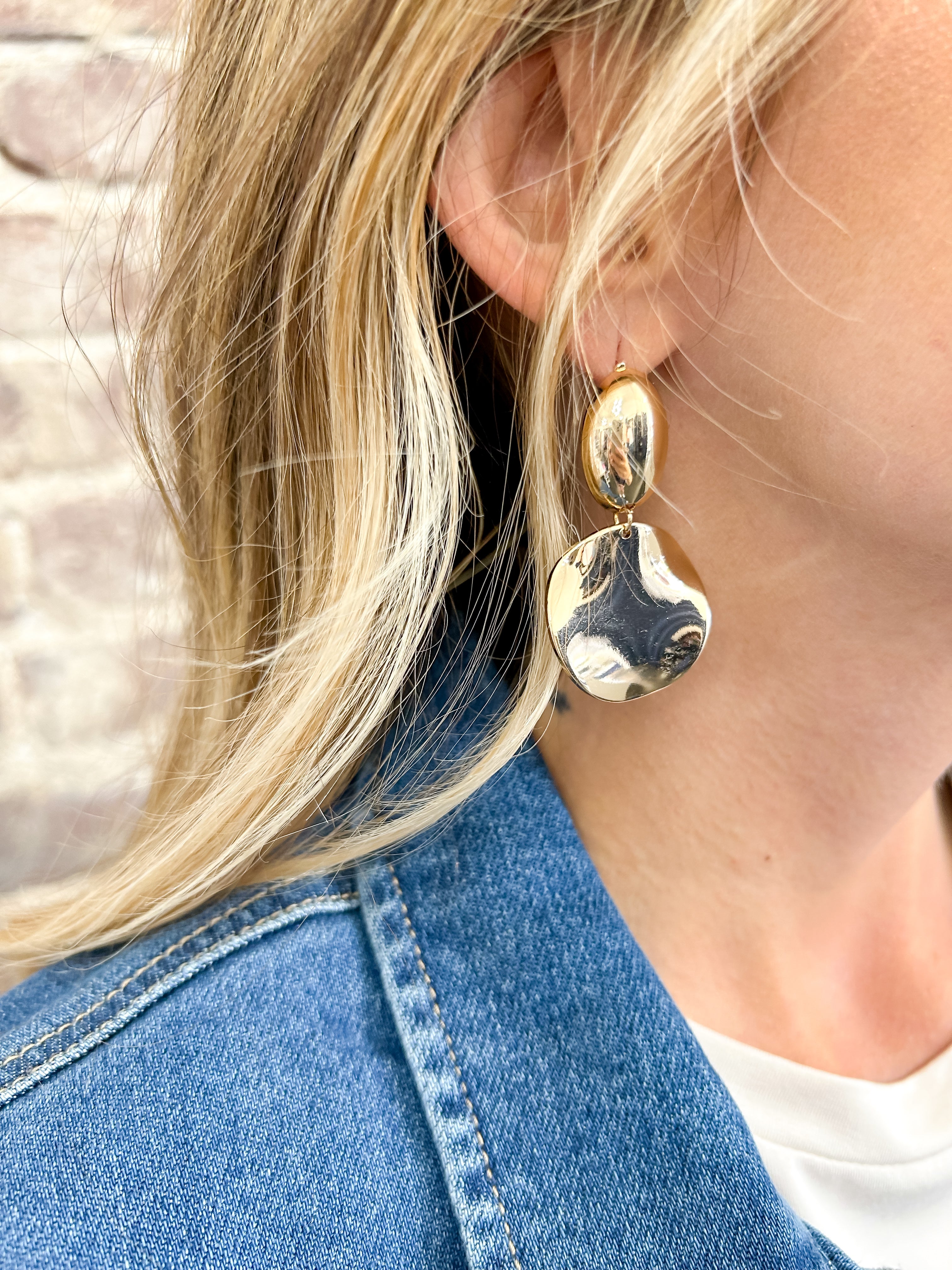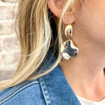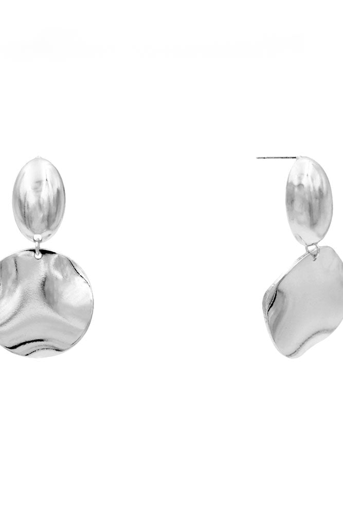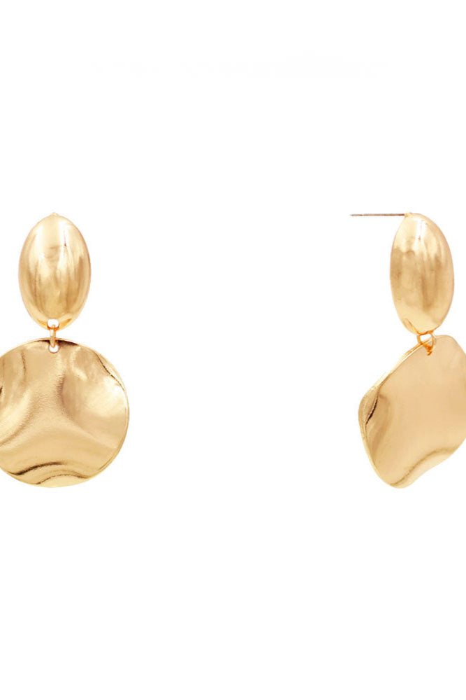 A fun pair of dangle earrings featuring a hammered metal look. Available in silver or gold.