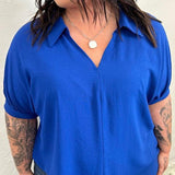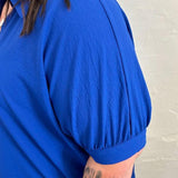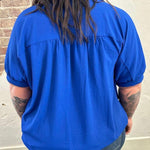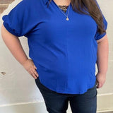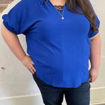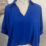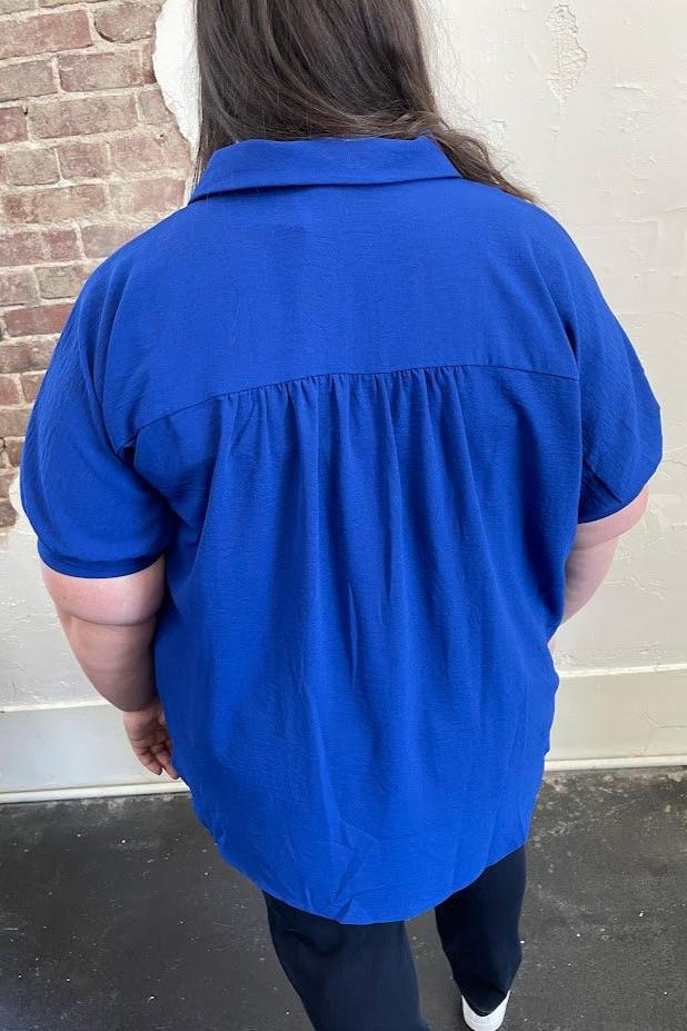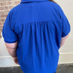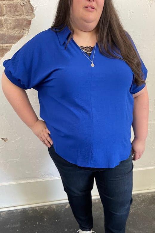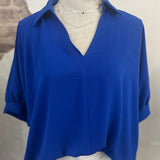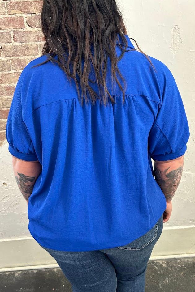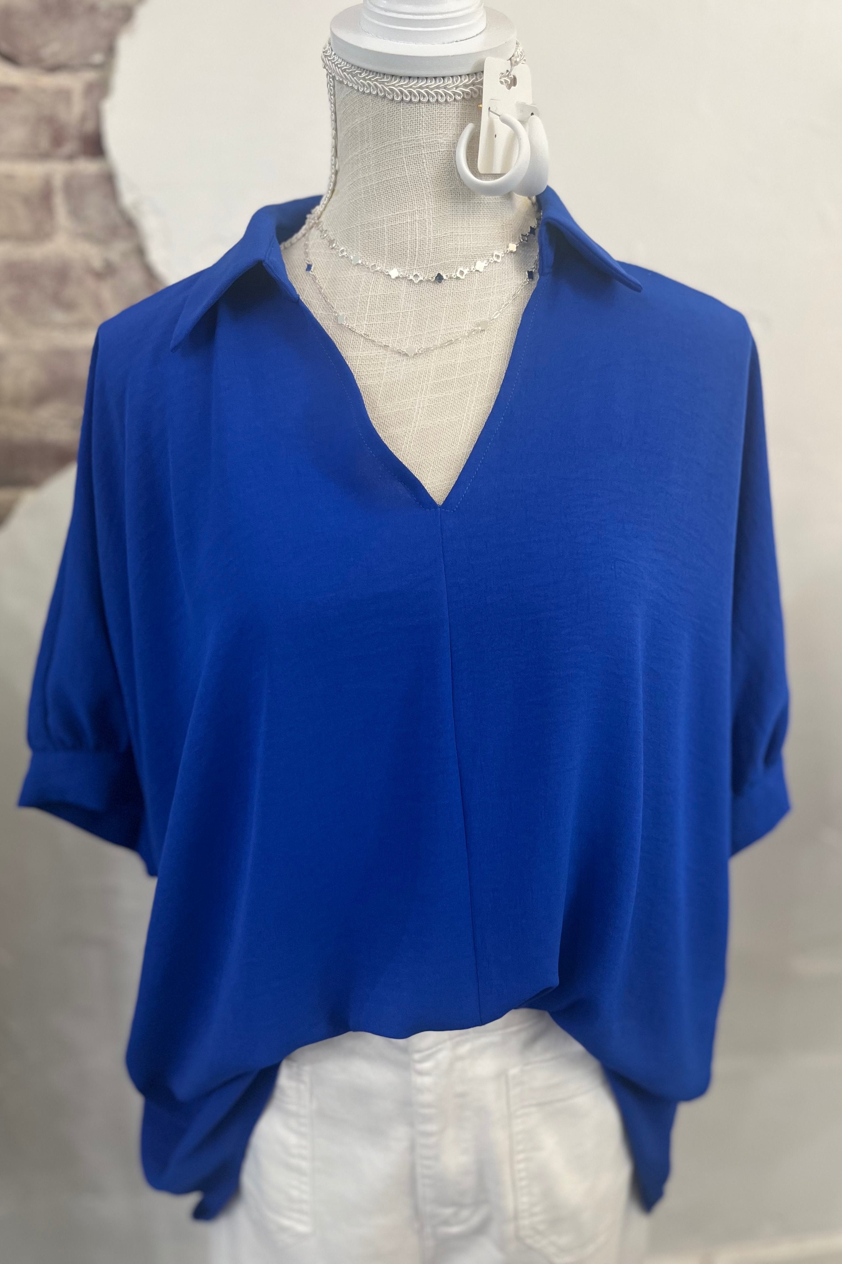 Prepare to take on your day in style with our Rainy Days Top! Classy and chic, this top is perfect for your work wardrobe. Featuring a collared V-neck and a loose fit, it is the ideal blend of comfort and style. We love the bold blue color! Pair with wide-leg pants and a simple necklace for a modern, sophisticated outfit that exudes confidence.