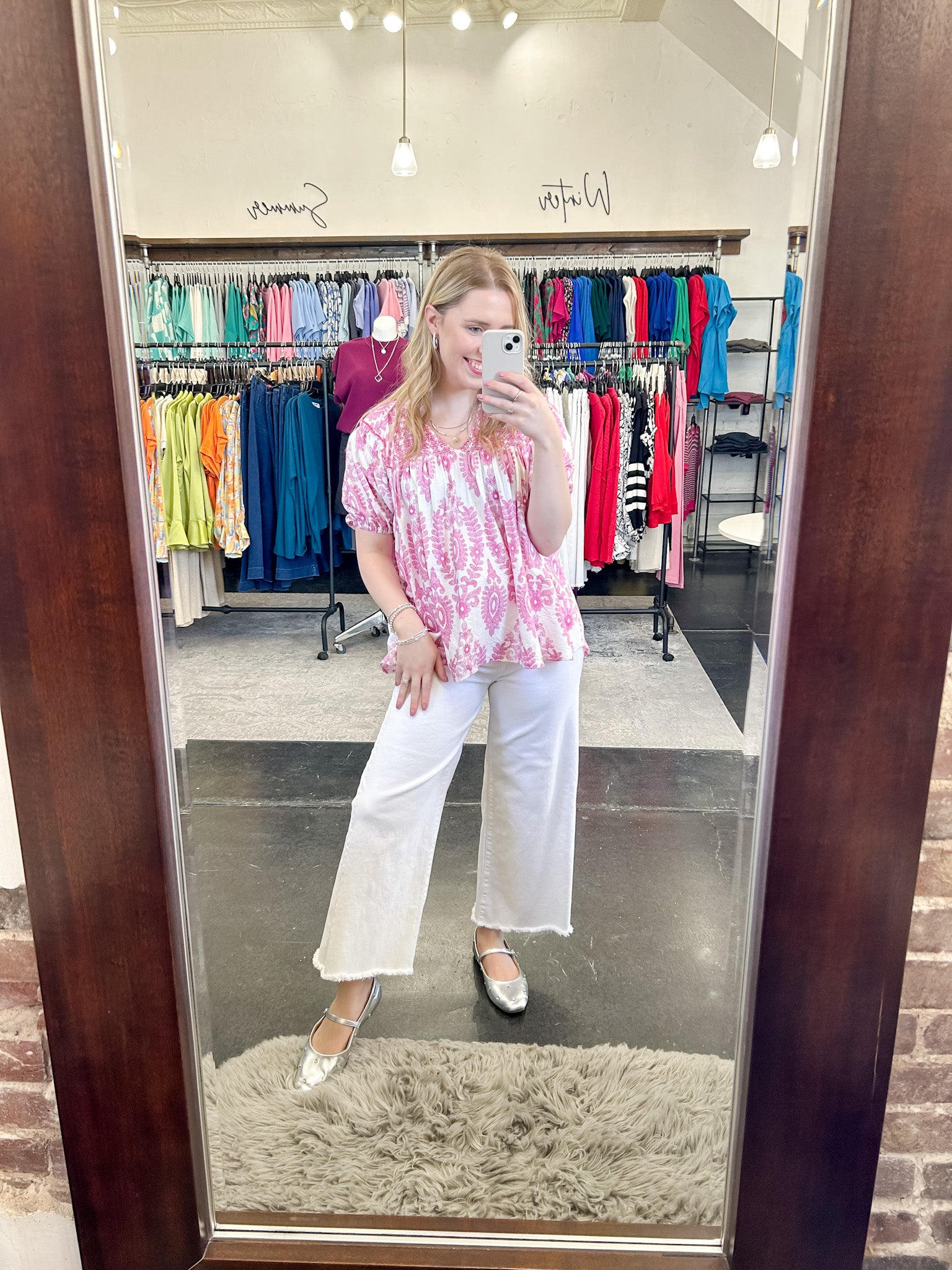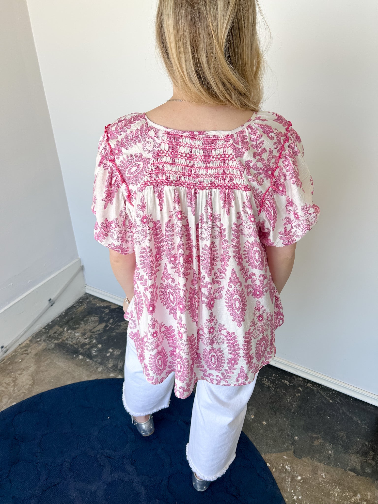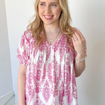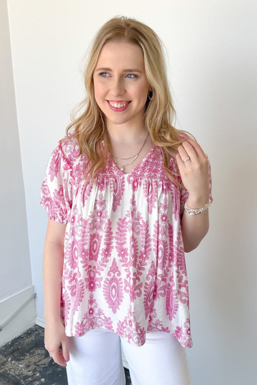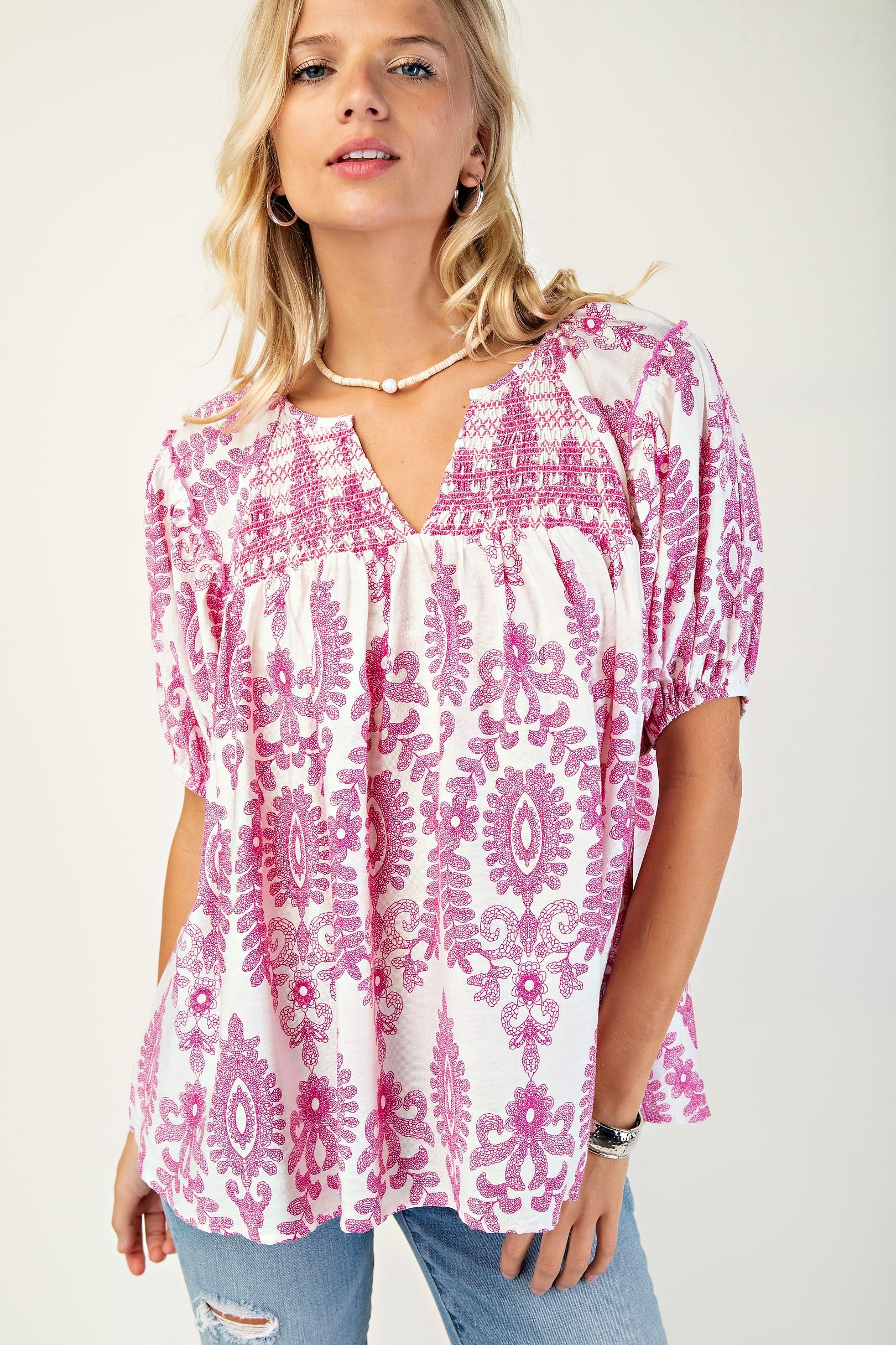 Start your day off in style with our Sweet Mornings Puff Sleeve Top! This black and white blouse showcases short puff sleeves and a smocked design for a classy, timeless look. The V-neckline and relaxed fit make for a comfortable and flattering fit. With its whimsy pattern, this top is perfect for adding some interest to your wardrobe!