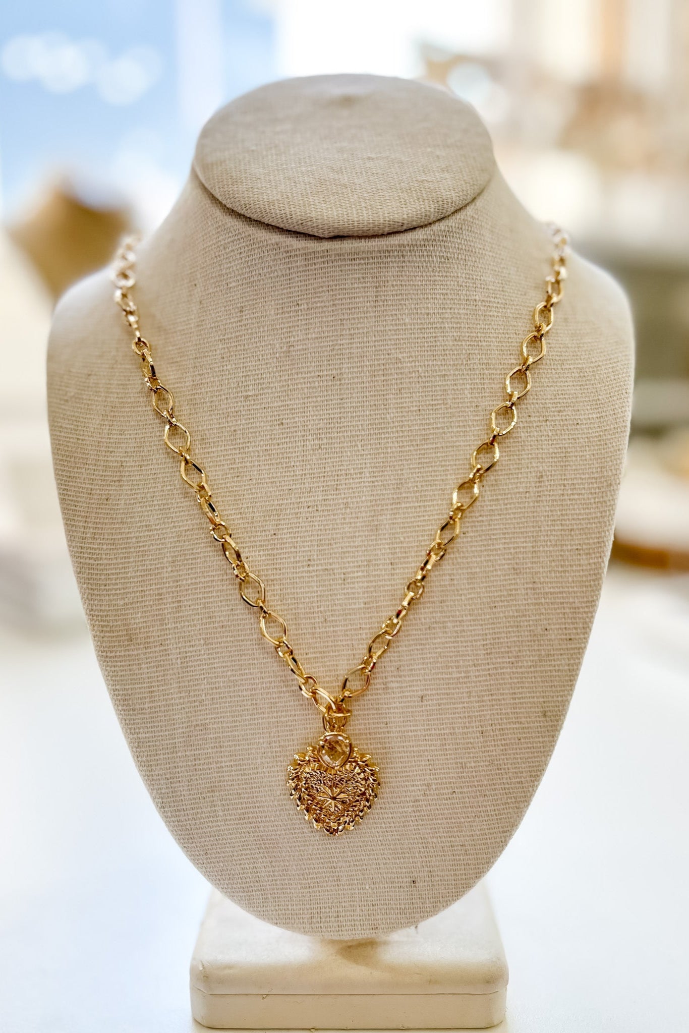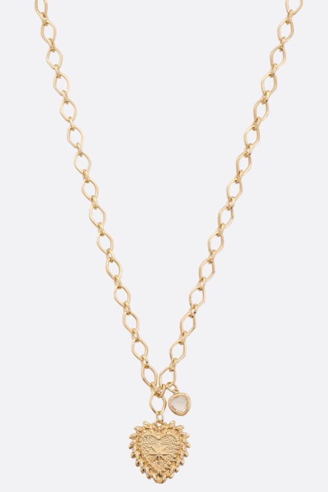 This elegant single heart charm necklace is the perfect accessory for any outfit. The design is timeless and versatile, making it a must-have in every jewelry collection. Available in gold.