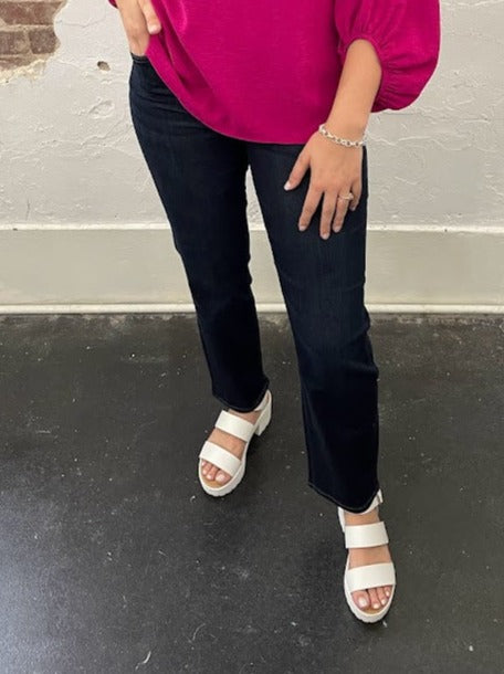 Our Kennedy Straight Leg jeans are here to help you style all of your favorite tops. These pants are silky soft with amazing stretch and recovery! Perfectly proportioned to slim and elongate your body. Featuring our must-have Halifax wash in the mid-rise, straight leg style.