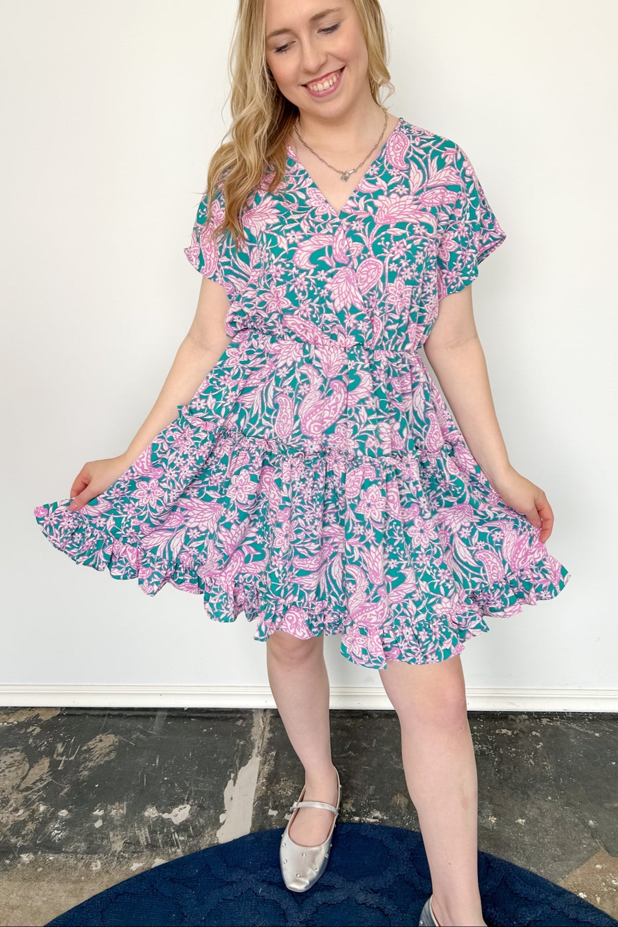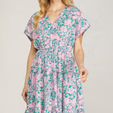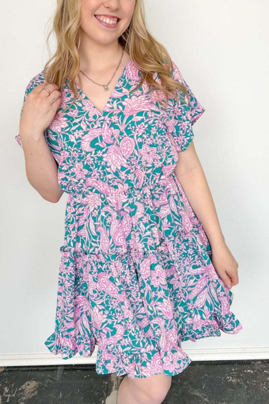Indulge in the beauty of the moment with our Watching Sunsets Kimono Sleeve Dress. The jade green hue and pretty flower pattern evoke a sense of tranquility, while the v-neckline and kimono style sleeves add an alluring touch. The emphasized waistline and tiered skirt create a flattering silhouette, making this dress a must-have for your closet!